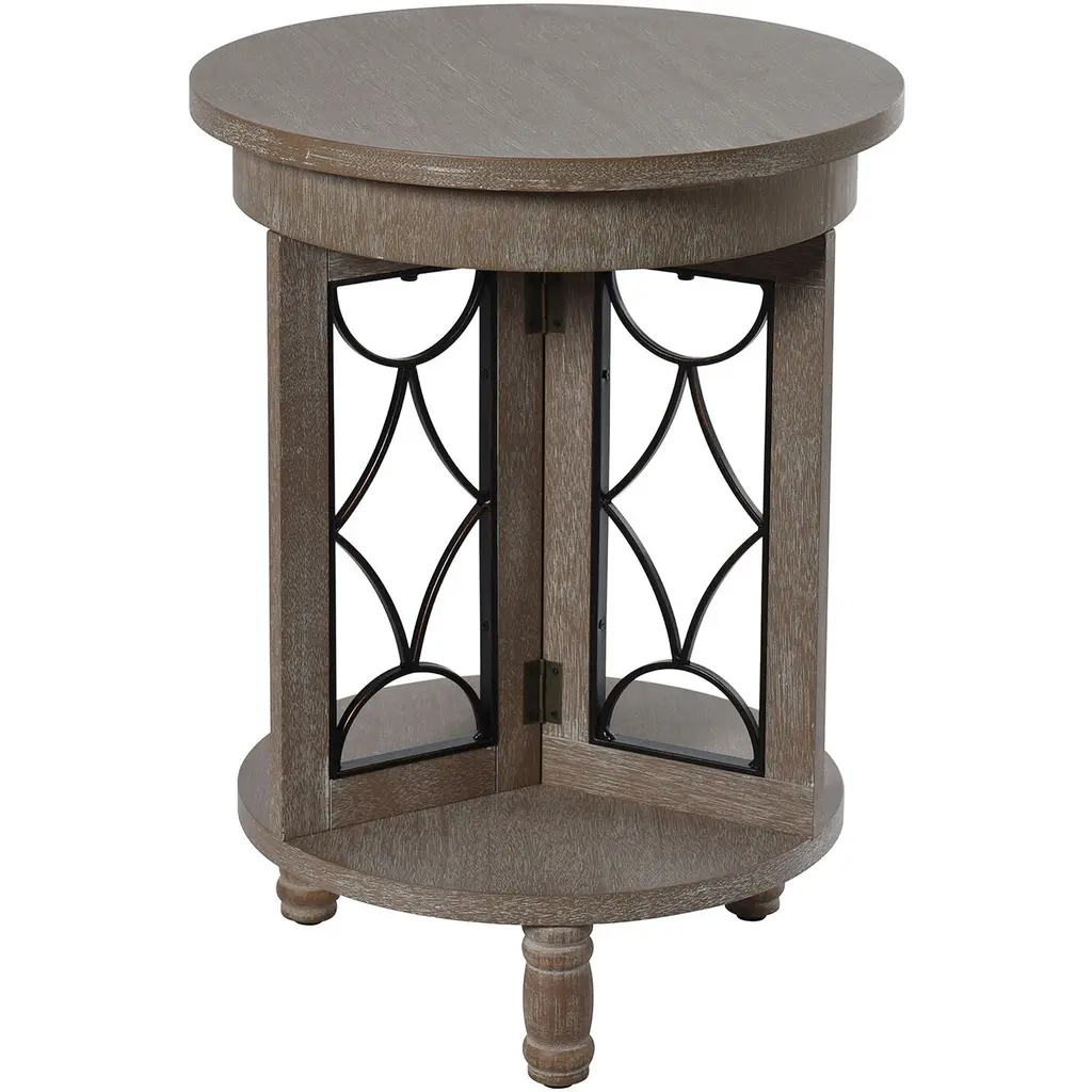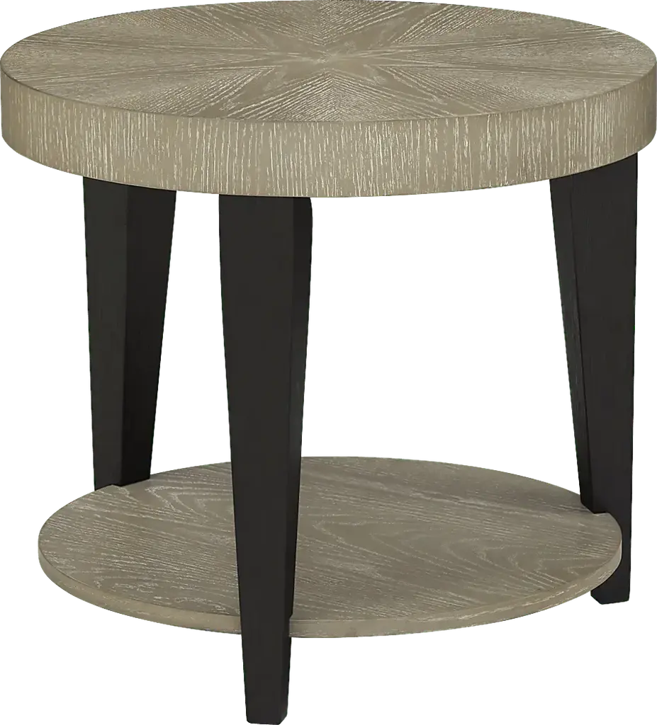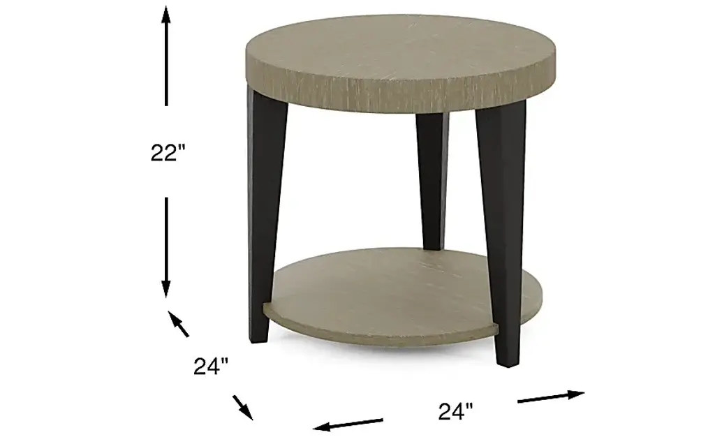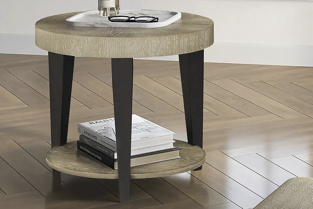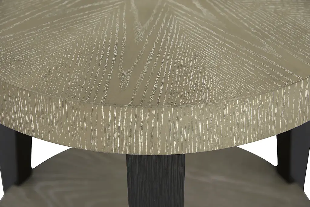 With design details to delight guests and family, the Rosalie end table is a functional work of art that everyone will want to come back to again and again. This transitional piece is beautiful from every angle with unique and contrasting espresso and gray oak veneers. The round tabletop and matching shelf beneath add class and convenience to any relaxation experience.