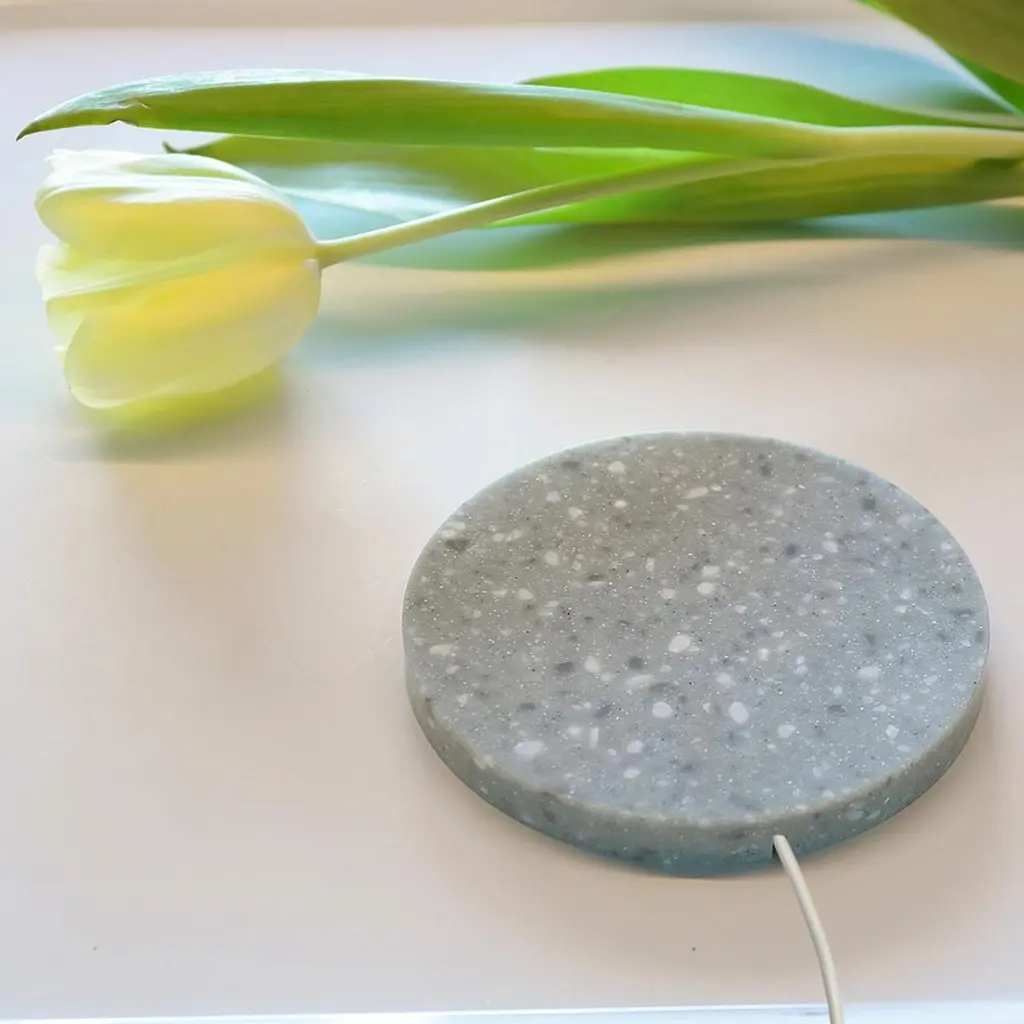 A corian base,that quickly charges your phone, with a touch of magic. A circle, a corian, realized with the care that marble requires.A powerful wireless charging technology ensures an efficient and reliable power delivery.The result is a magical object, with a natural feeling,a piece of art that wonderfully fits on any table or bedside table,or everywhere you imagine.A small evergreen plant from the mint family whose leaves are used to flavor food. Here, it can be used to give a touch of green at home or anywhere around you.Designed and manufactured in Italy, 100% Italian marble, 0% plastics.- 15W power supply included in the box.- Measures: Integrated cable: 90cm (3ft)- Base diameter Ø 12cm (4.72in) Compatible with all Qi-enabled devices.