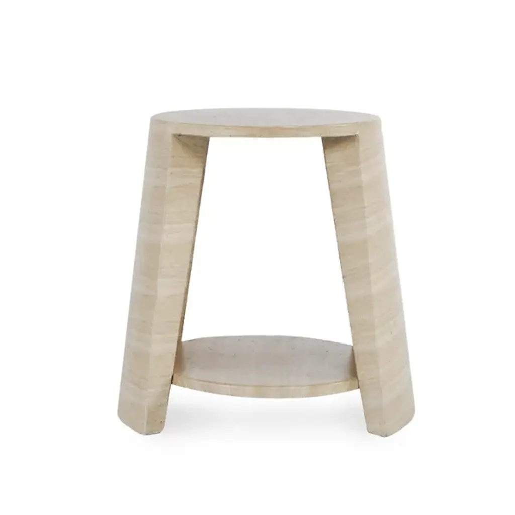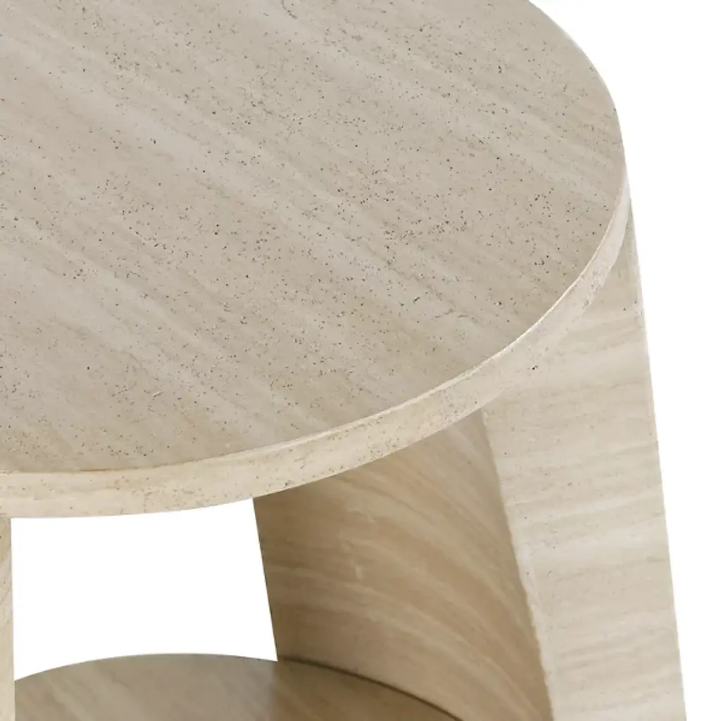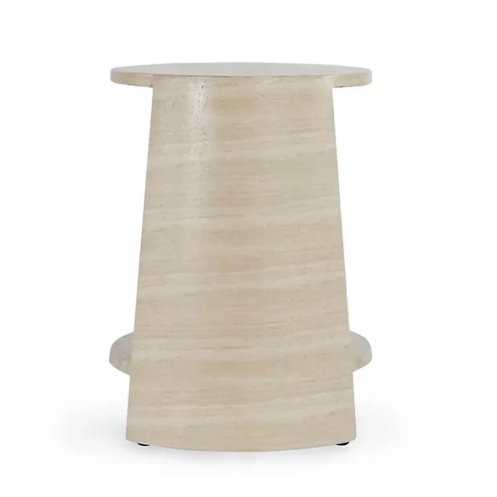 The Rosen Outdoor Round End Table from Classic Home balances geometric precision with organic materials in its streamlined design. Handcrafted from glass fiber-reinforced concrete stone, this round table withstands the elements while providing essential surface space for outdoor entertaining. The travertine-style finish (not marble) varies with each piece, giving every table a unique identity. Its practical open-bottom shelf creates convenient storage for outdoor essentials or decorative items. Perfect for displaying plants or serving refreshments, this table enhances any patio or garden setting.