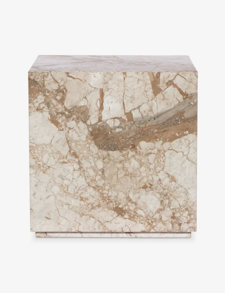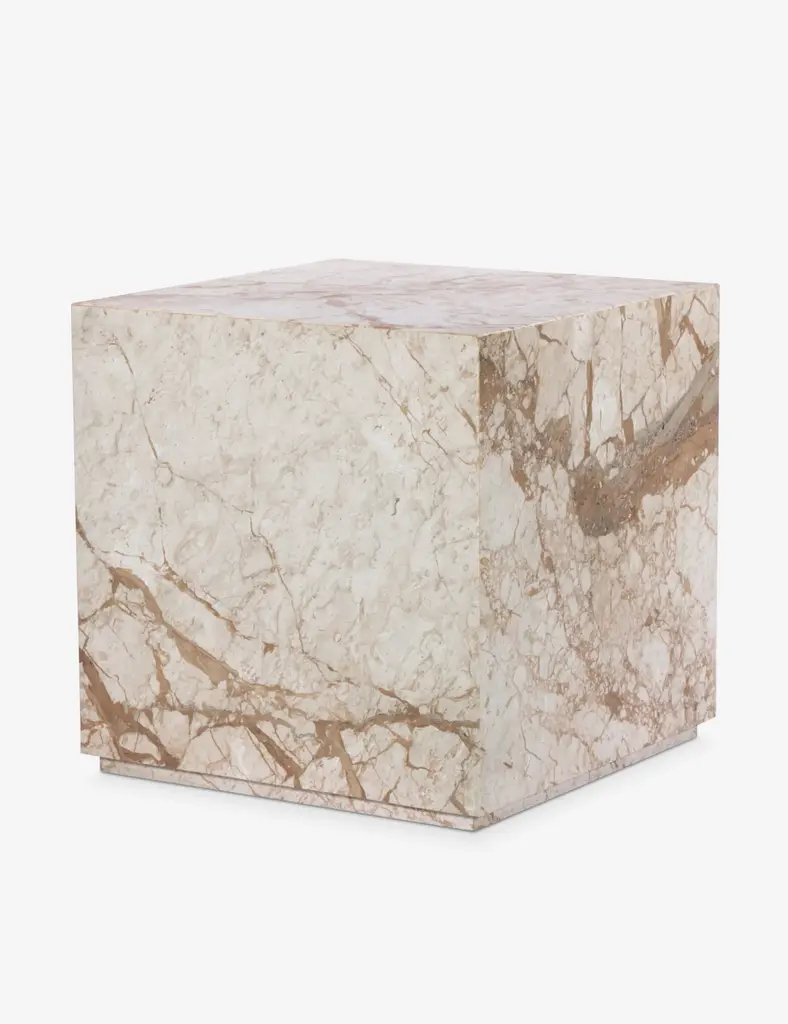 A stunning cube of taupe marble brings earthy elegance to this modern side table. Whether styled as a plinth for sculptural decor or as a luxurious end table, Rosina is here to elevate your curation.