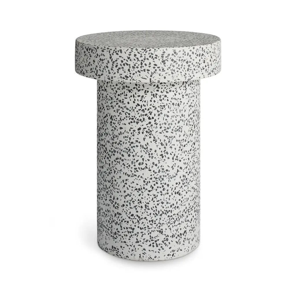 Rossan French Country Grey Cast Concrete Round Drum Outdoor Side Table