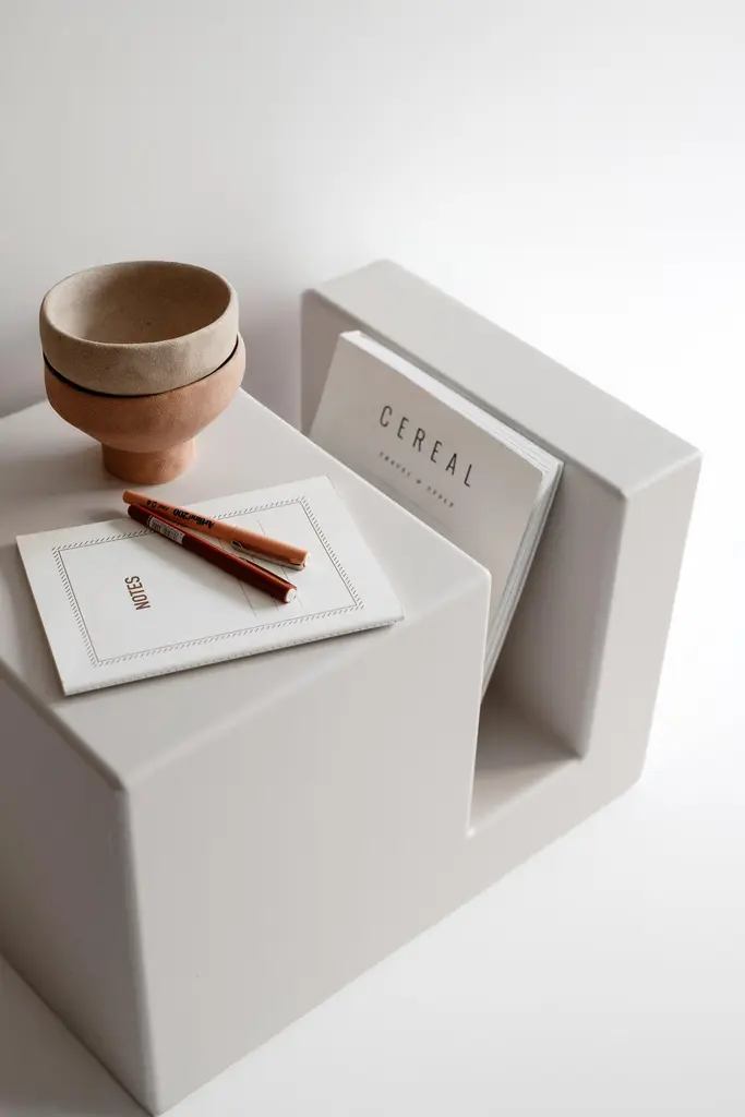Rota stands out with its unique functional design and can be turned and used in any direction according to usage preference. It can be used both as a nightstand and side table. The chamber in its body gives the product a different function. It is hand-produced by local artisans using natural methods. It can be produced in different color options.