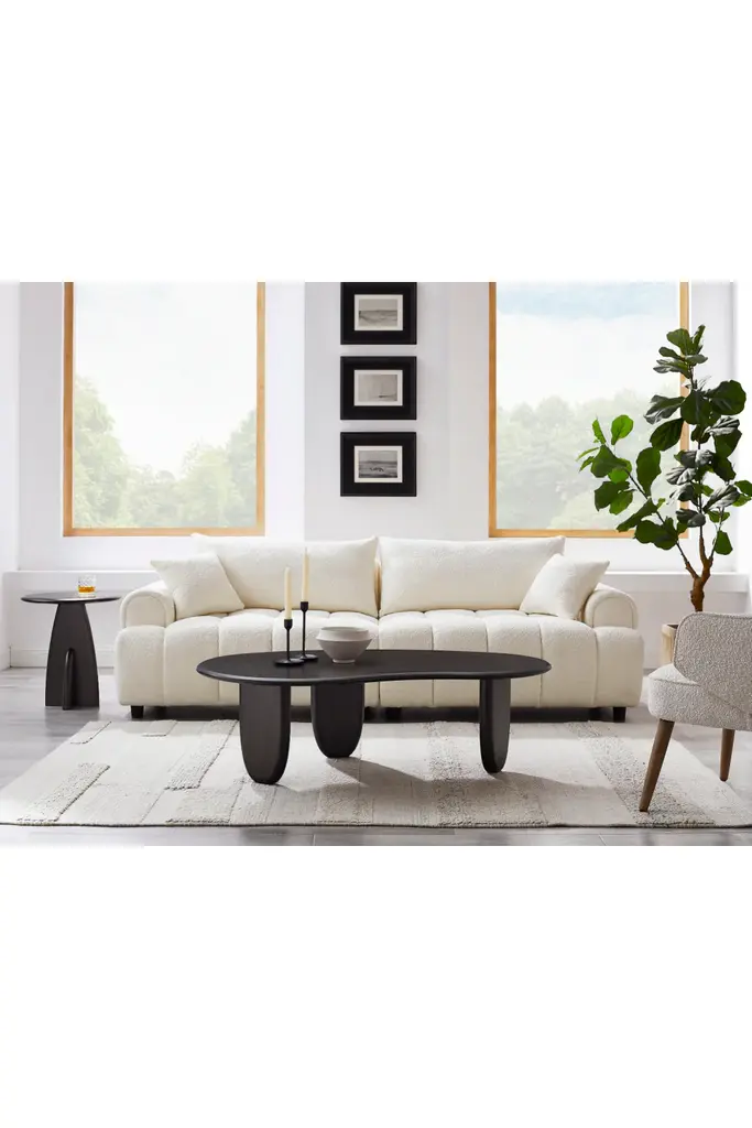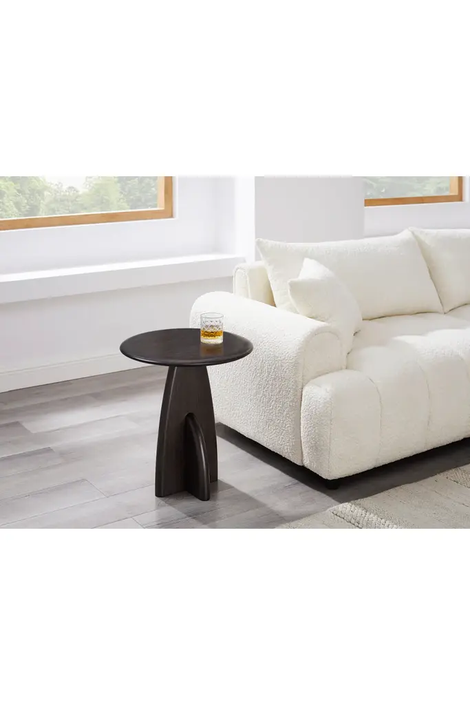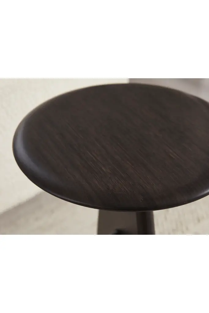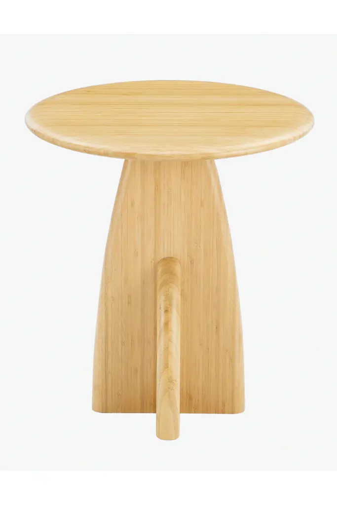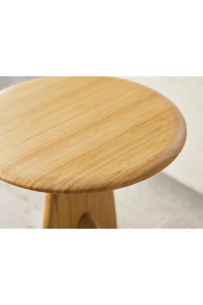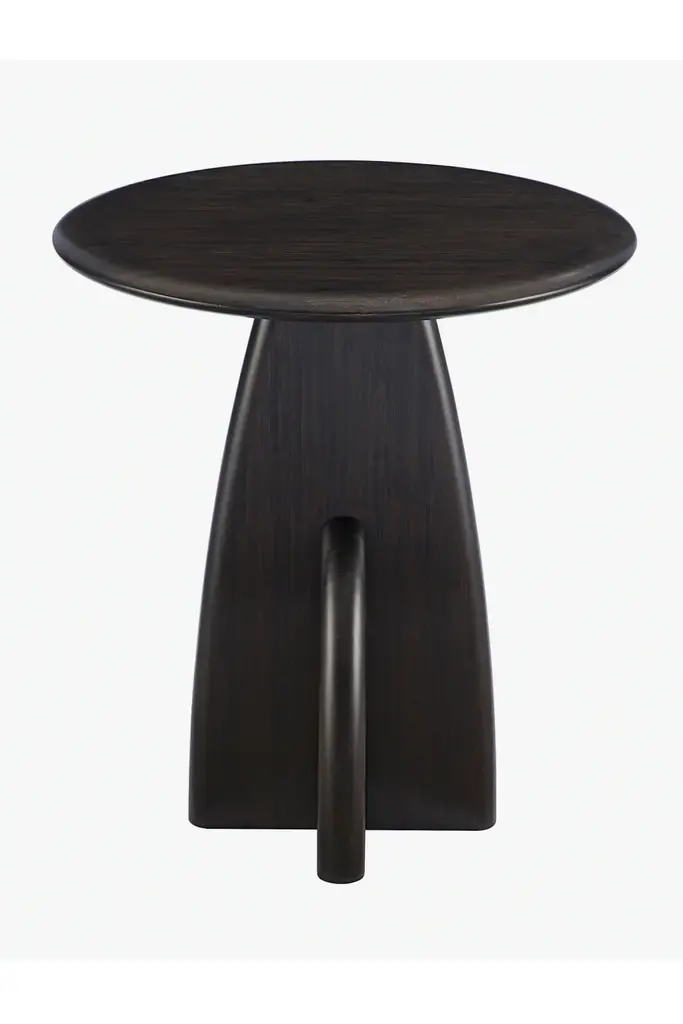Introducing the Round Bamboo Side Table from Greenington Zephyr. With a minimalist and sculptural design, this table adds an architectural quality to any space. Crafted in solid bamboo with a Caviar finish, its asymmetrical shape exudes artistic appeal. Perfect for resting items such as a cup, lamp, book, or even a laptop. Elevate your modern home with this elegant and functional piece.