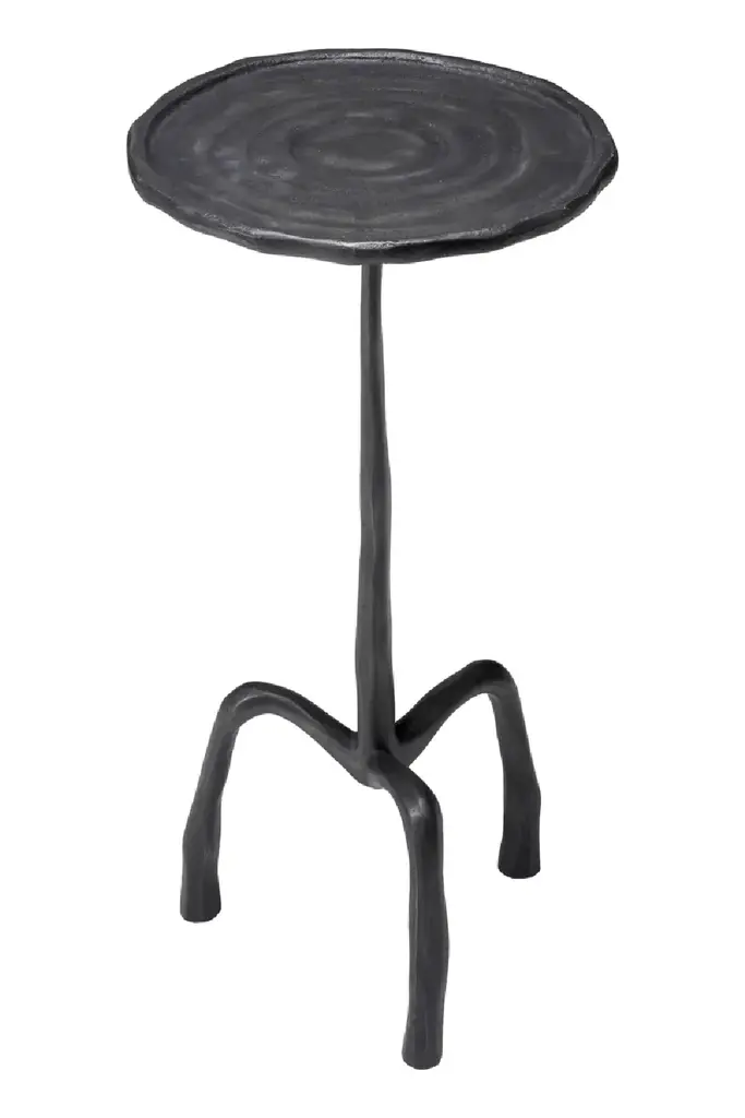 Somewhat traditional in its design yet unique in its execution, Side Table Kubu S will stand the test of time. This extraordinary accent table looks like it was carved out of wood, but it was crafted from metal and provided with a bronze finish. Supported by a tall stand and curved tripod legs, the round tabletop has a raised edge and a relief that reminds one of growth rings in a tree trunk.Download Specification Sheet - Small - Large