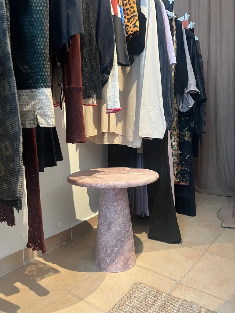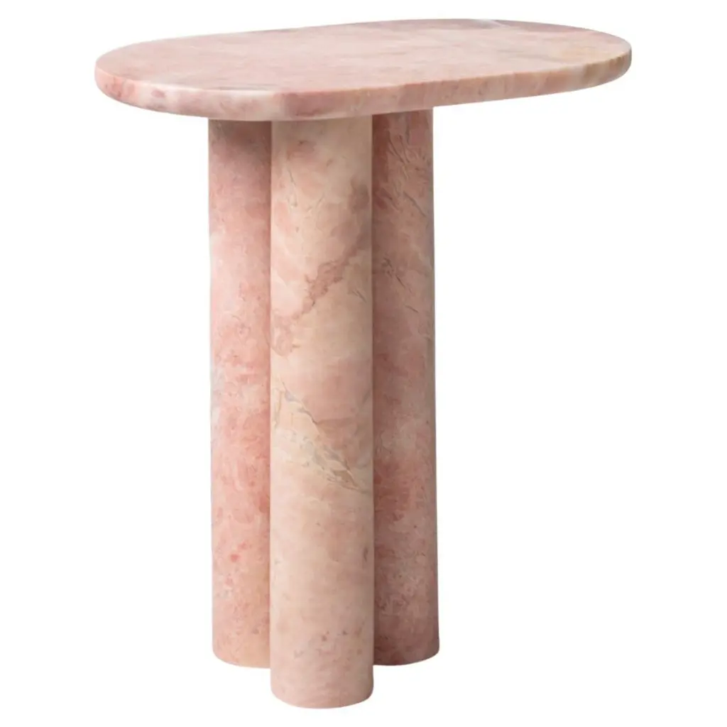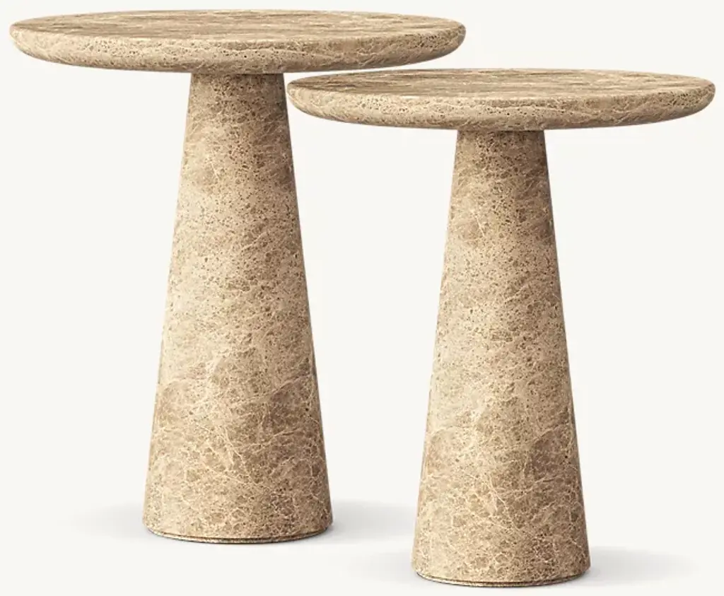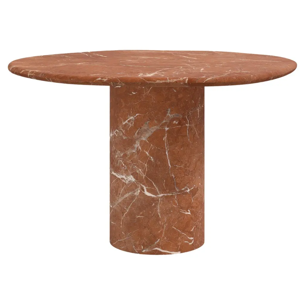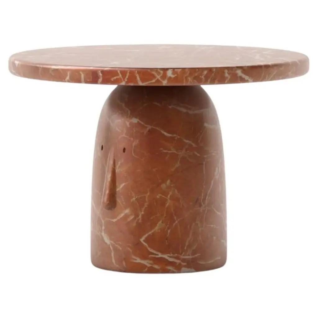 This minimalist table is crafted from Red Travertine showcasing a circular tabletop that balances securely and effortlessly with its own weight.Inspired by the iconic vintage designs of Angelo Mangiarotti, the sculptural column base adds an artistic and timeless quality to the piece.We meticulously sourced the finest travertine blocks for this collection, ensuring exceptional quality—because not all travertine is created equal. Dimensions: H 45 cm x Ø 45 cm Finish: Honed (matte finish)For ease of transport and installation, the tabletop and base are packed separately.This design is also available made-to-order in custom shapes, sizes, and stone options to suit your space perfectly.
