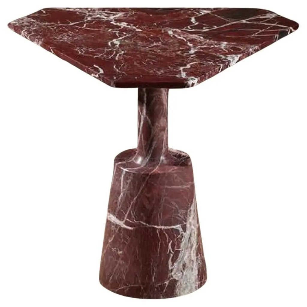 Round Red Travertine Side Table, In The Style Of 1970 Angelo Mangiarotti