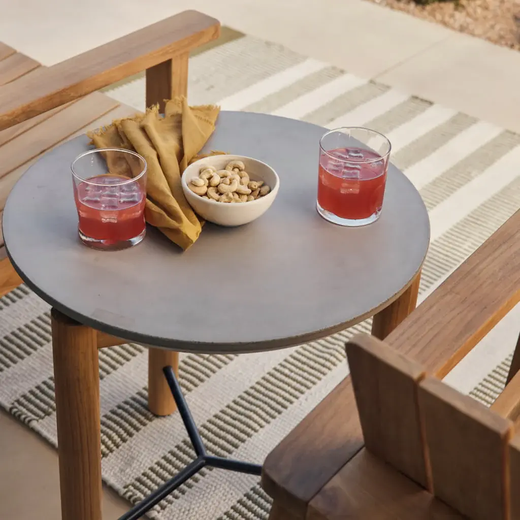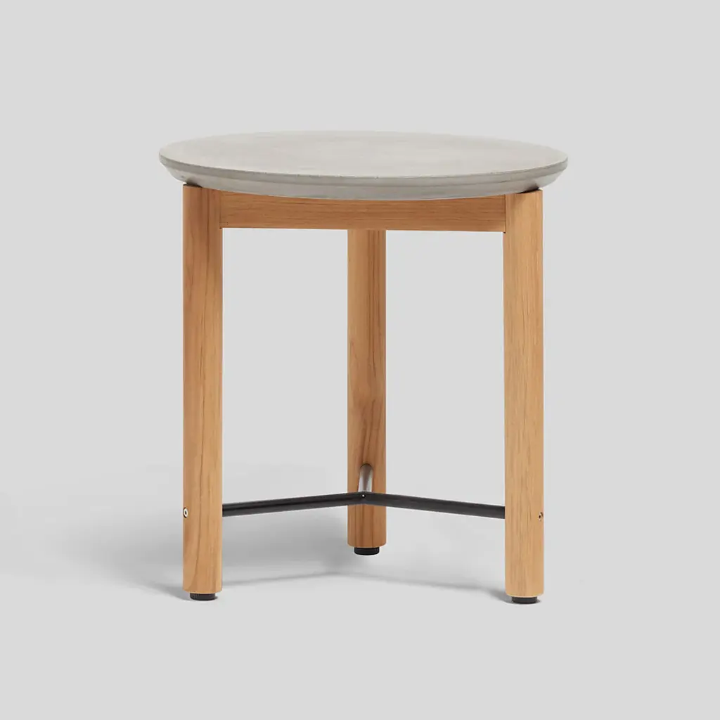 Modern and minimal, our Haven Round Side Table features a hand-poured concrete tabletop and solid, FSC-certified teak base. Each concrete slab is one of a kind and has a chamfered edge for durability. The Round Side Table is made to complement our Haven lounge collection and is also available as an outdoor coffee table.