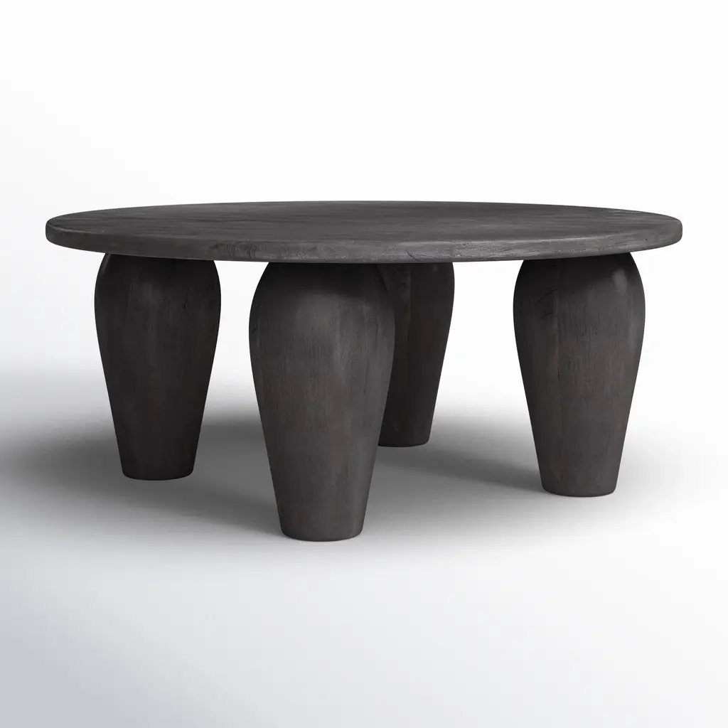 Round Side Table Crafted From Mango Wood Burnt Finish