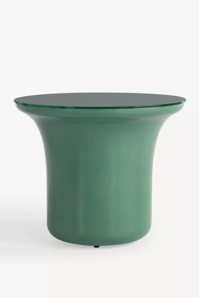 Sverre by DF is a sleek side table with a thin, round tray tabletop and a chunky pedestal base. Made with powder-coated iron, this sturdy furniture is a versatile addition to a modern living space.