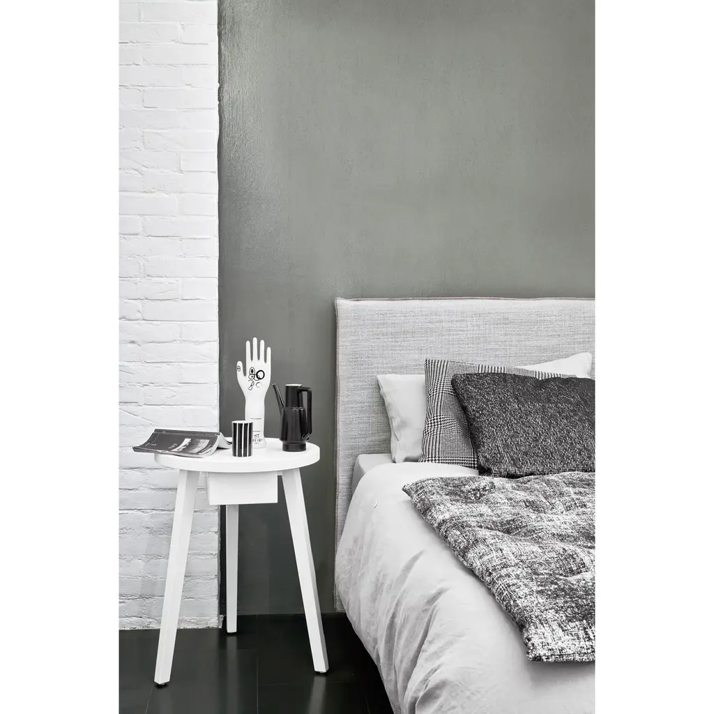 Introduce a touch of sophistication to your living space with our Gray Round Side Table with Drawer . Featuring a clean and essential design, it is available in a variety of heights and finishes, including natural walnut and lacquered oak. The raised edge adds a subtle touch of elegance while the integrated drawer provides practical storage.