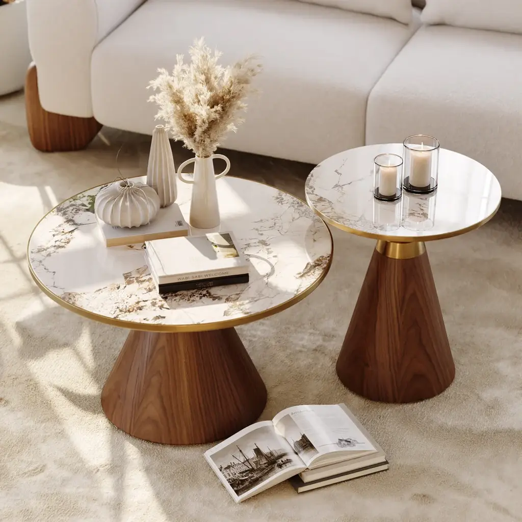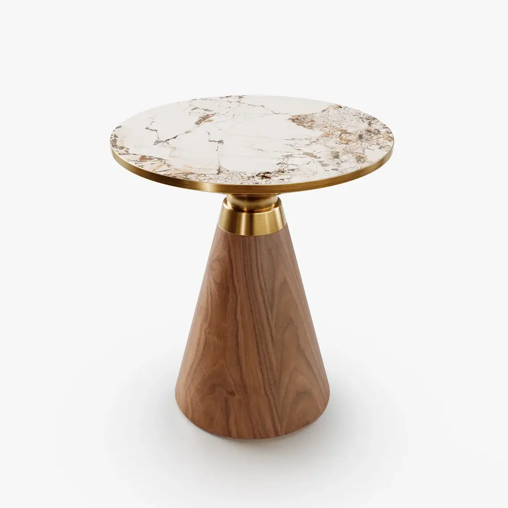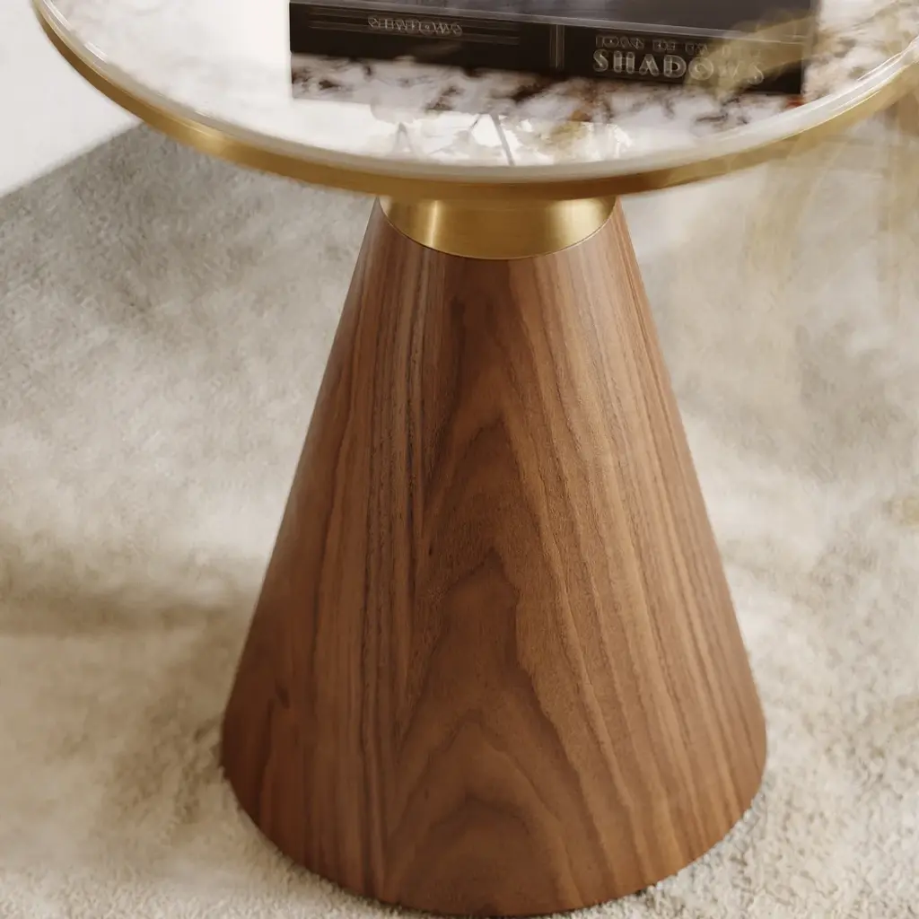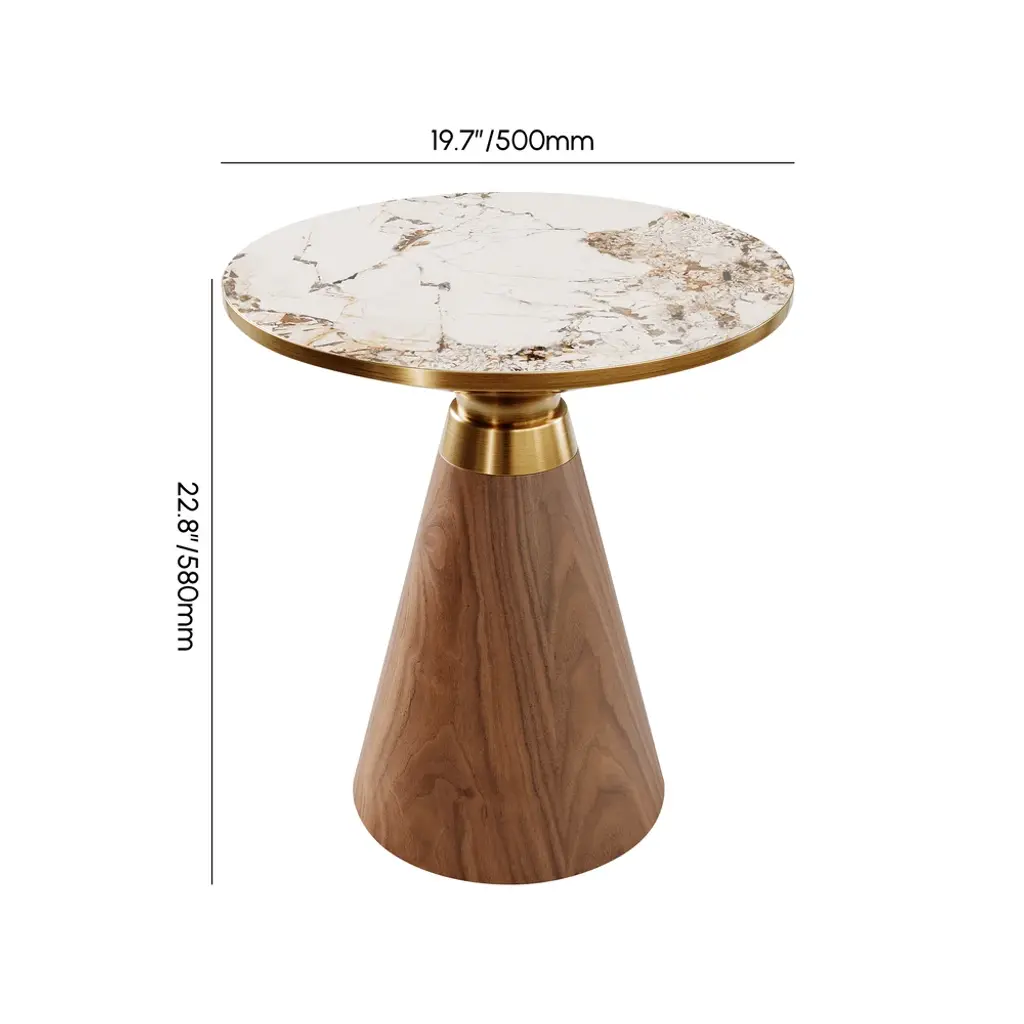 Modern and creative hourglass shape design is simple, generous, and useful. The natural Sintered Stone tabletop design of the end table is elegant, generous, and useful. The frame and base with stainless steel are sturdy and durable. The smooth Sintered Stone top provides a perfect platform for framed photos, plants, coffee, or magazines.