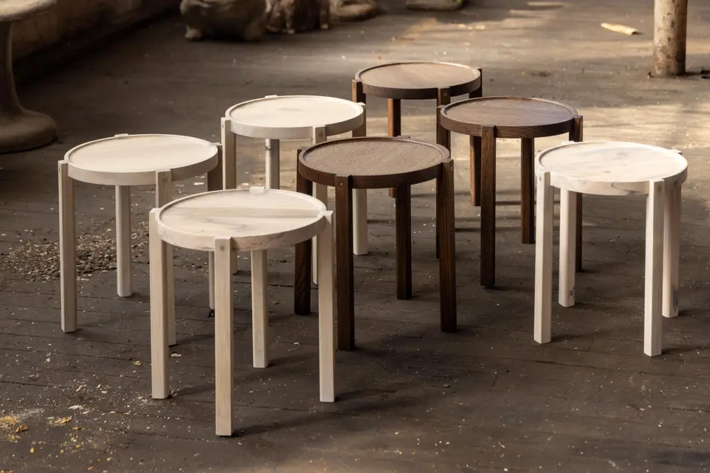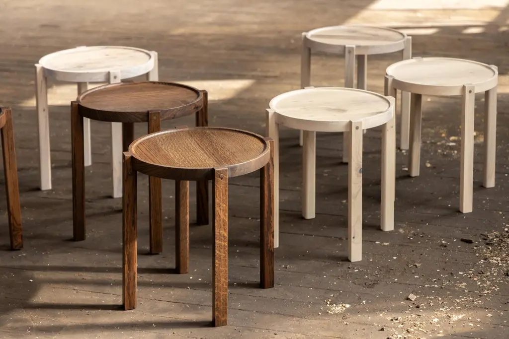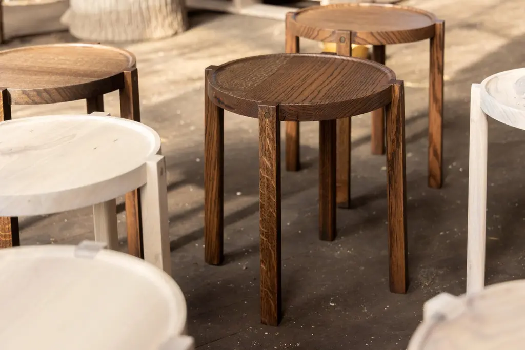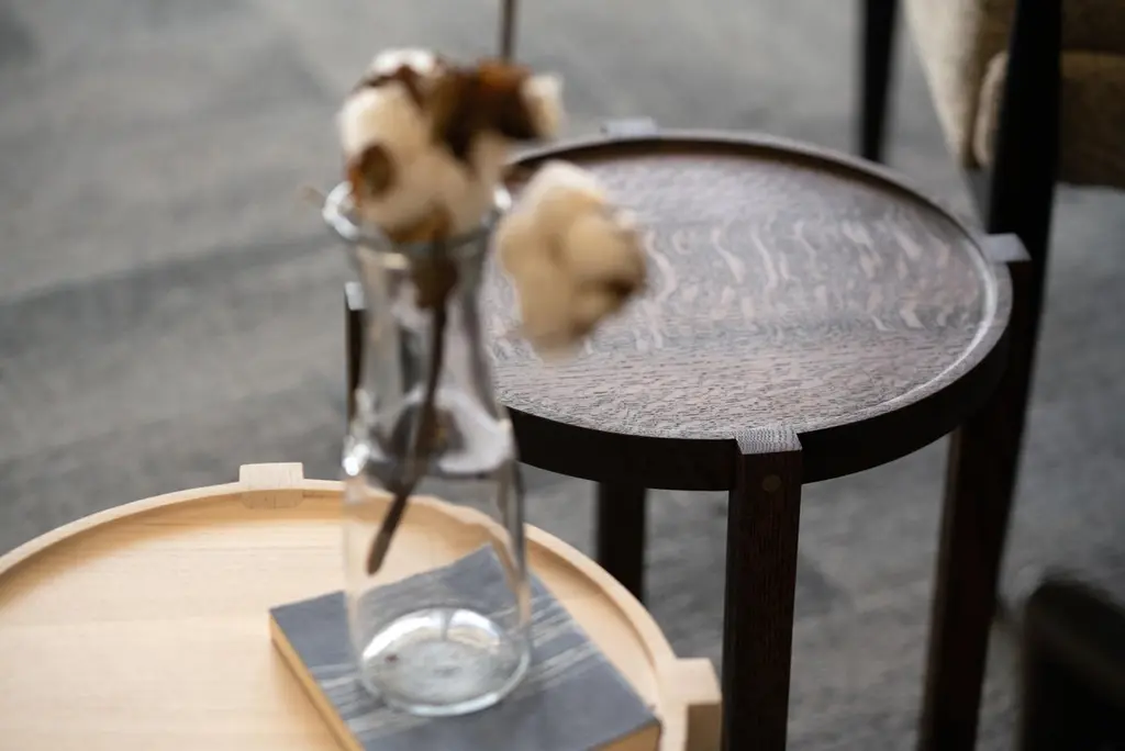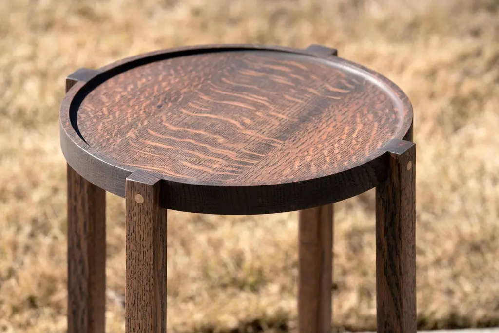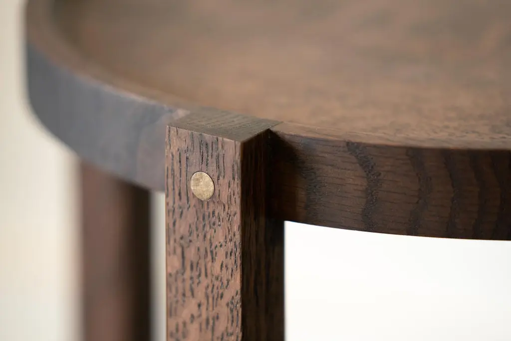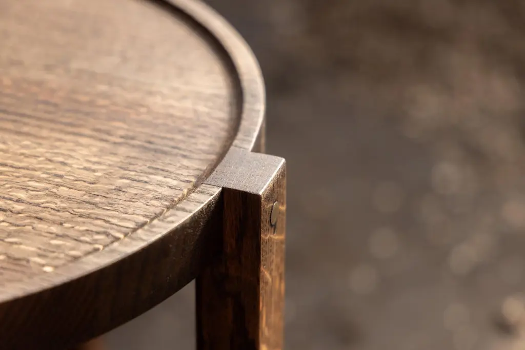 Round Wood Side Table Black Color Oak With Bronze Details By Alabama Sawyer