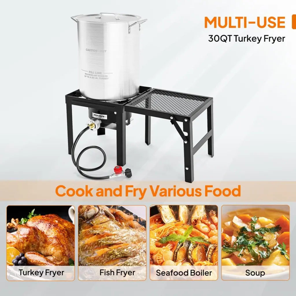 Rovsun 30qt Turkey Fryer With 54000btu Propane Gas Stove, Outdoor Deep Fryer Aluminum Seafood Boiler For Crawfish Boiling