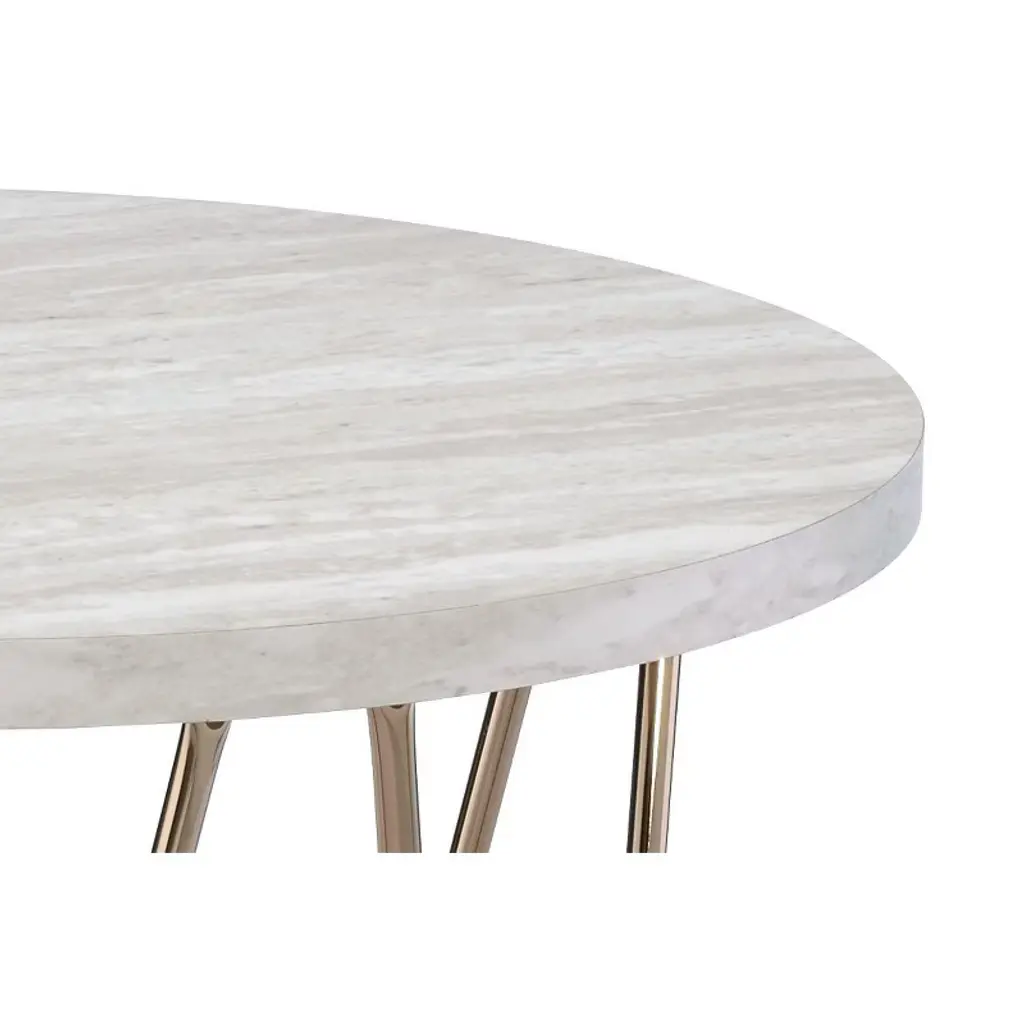 Crafted of engineered woods with 16 mm scratch-resistant faux-marble top and 16 mm square metal tubingStyling details include hexagonal web-style metal base, faux white marble top, and round shaped End Table TopCan be used as a Side Table or Nightstand, with the 24in height working especially well for low profile bedsAdjustable levelers add stability on uneven floorsEasy Assembly, all tools included