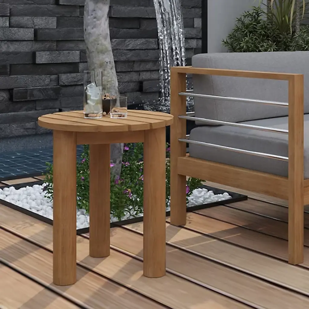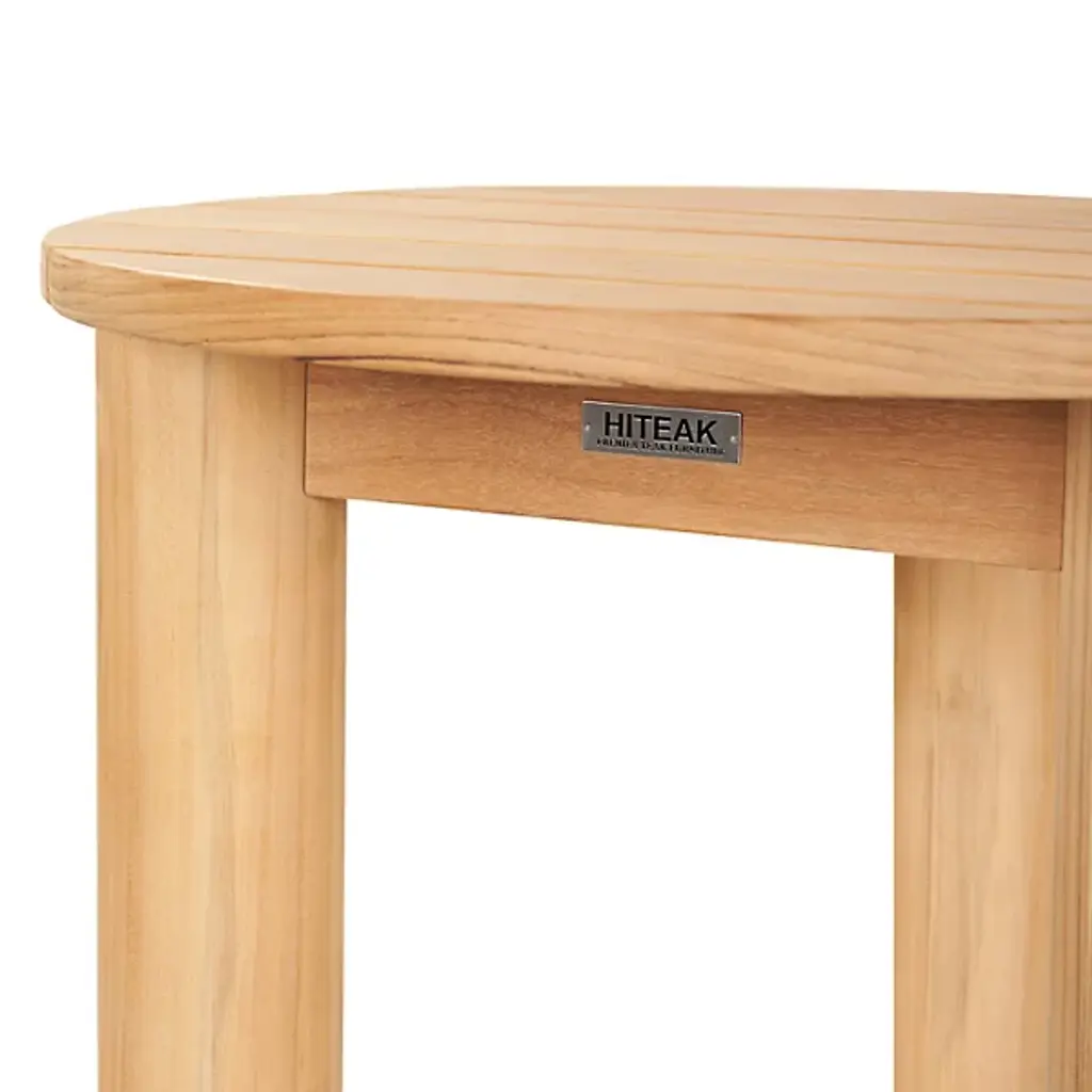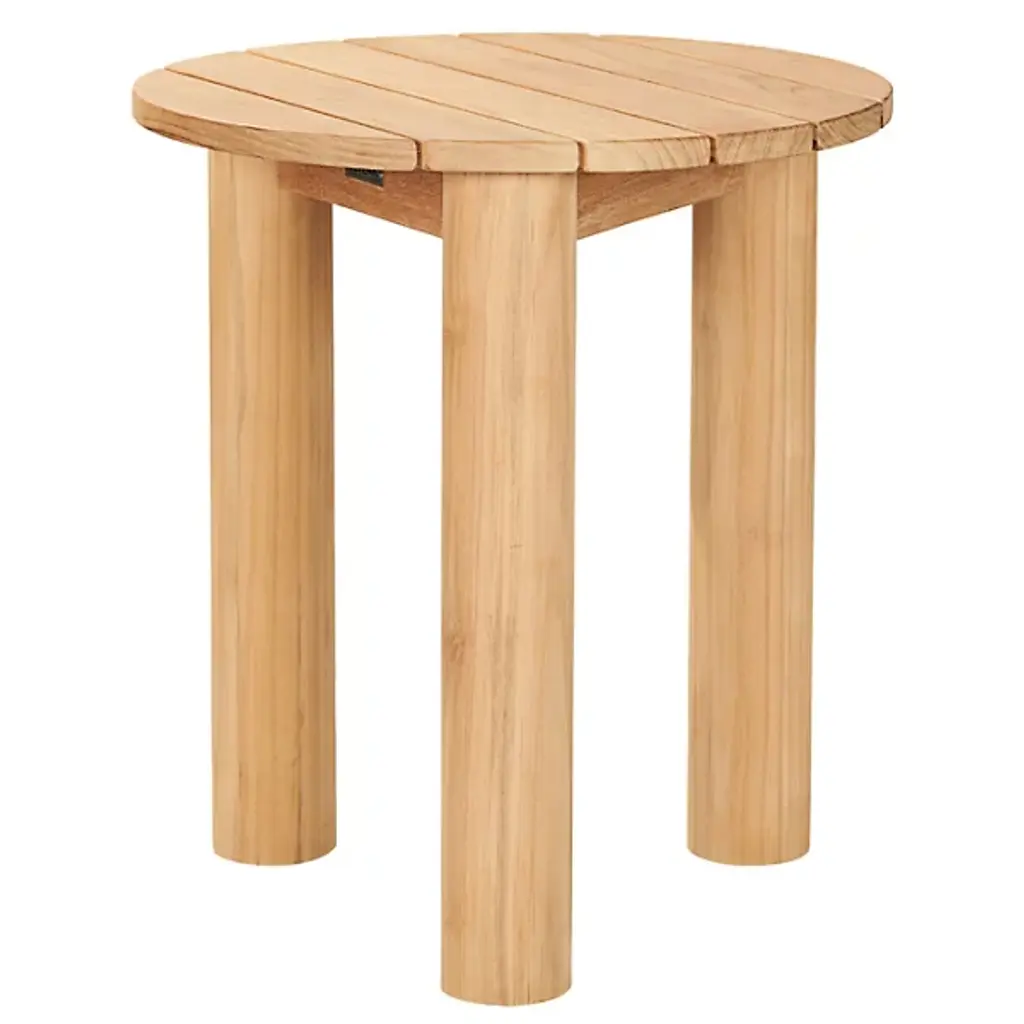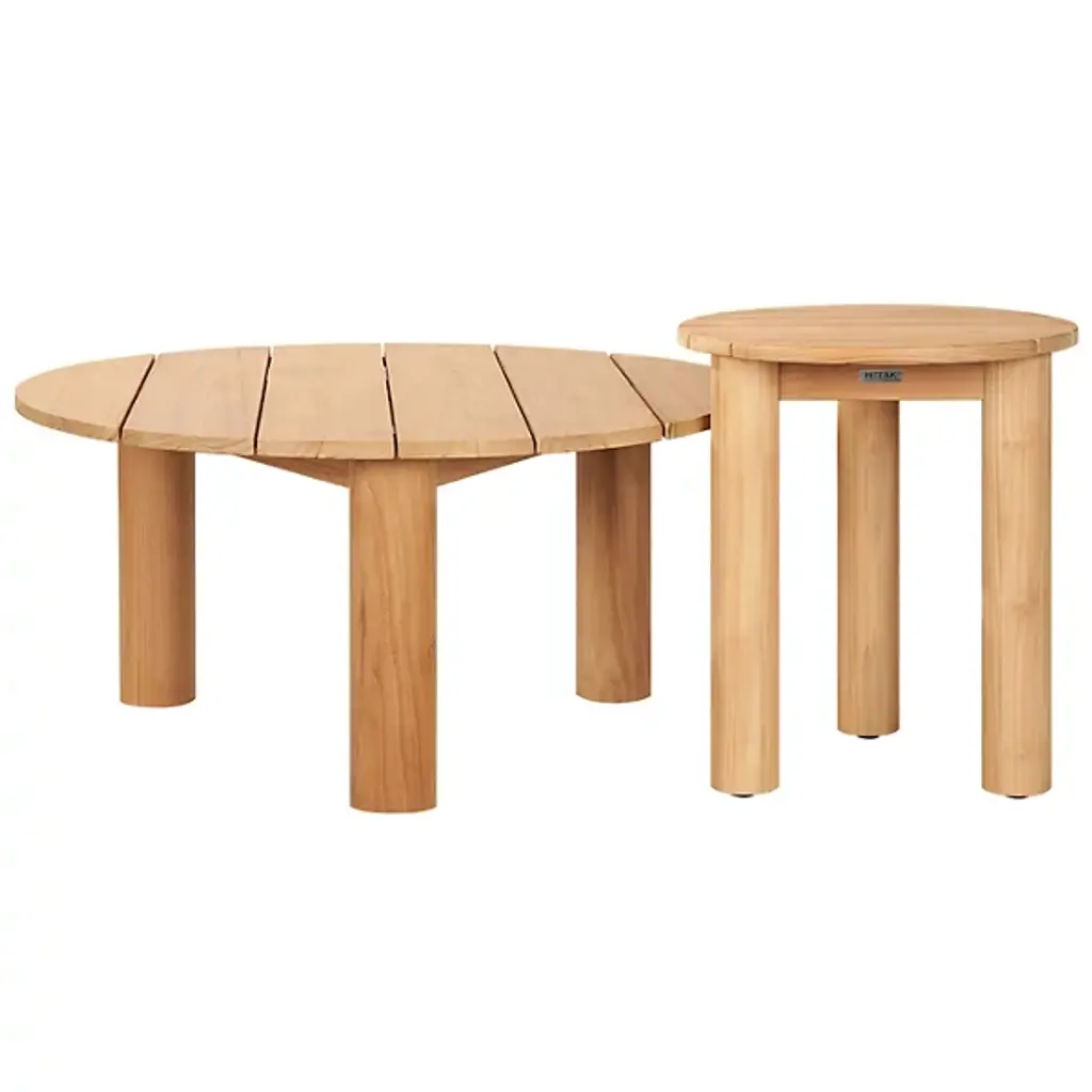 The Rudolph Outdoor Side Table from HiTeak Furniture continues architect Paul Rudolph's Brutalist design philosophy in a more compact format than its coffee table counterpart. This side table emphasizes materials and structural elements rather than decorative flourishes. Sturdy round legs crafted from hefty cuts of premium teak support the matching surface while maintaining the honest construction approach that defines the Brutalist movement. Simple assembly allows owners to appreciate how the components work together to create a piece suitable for both living rooms and outdoor spaces.