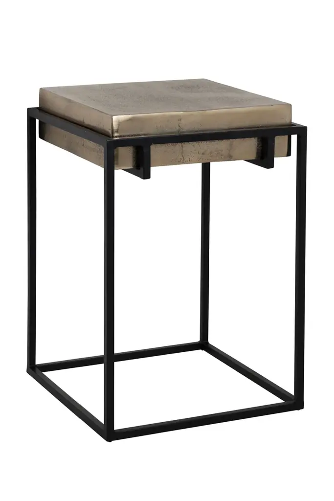 Oozing with industrial flair, the Calloway end table by Richmond Interiors features a thick square aluminum top in aged gold finish framed in geometrical black iron. It's a charming piece to add some character in your interior.