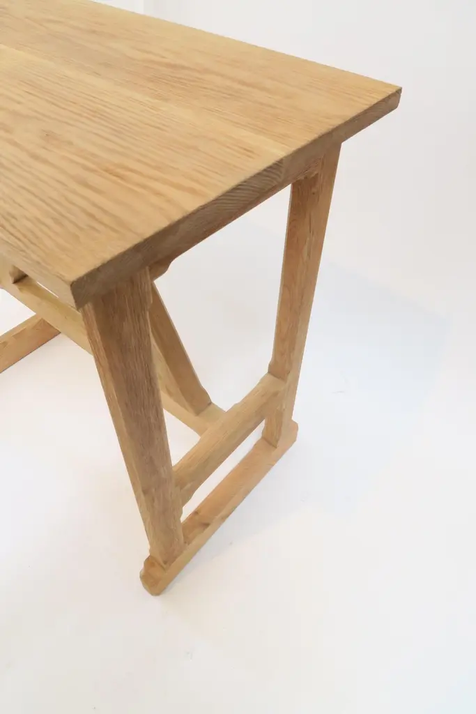 Rustic Craftsman Style Trestle Console, Small In Oak By Martin And Brockett