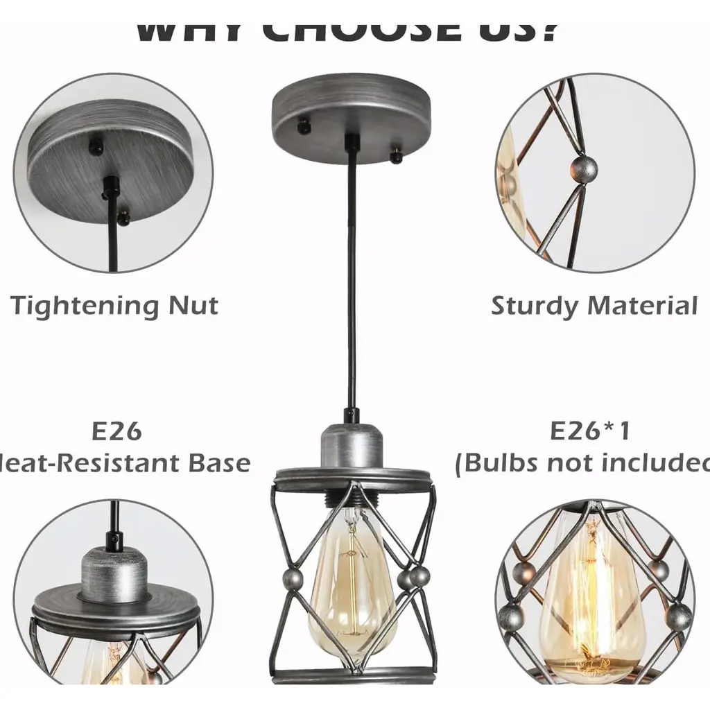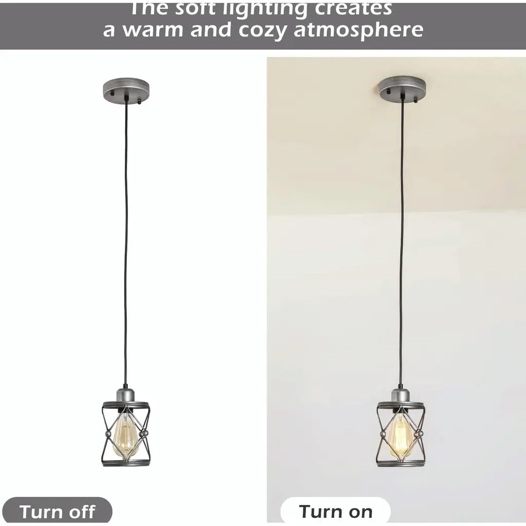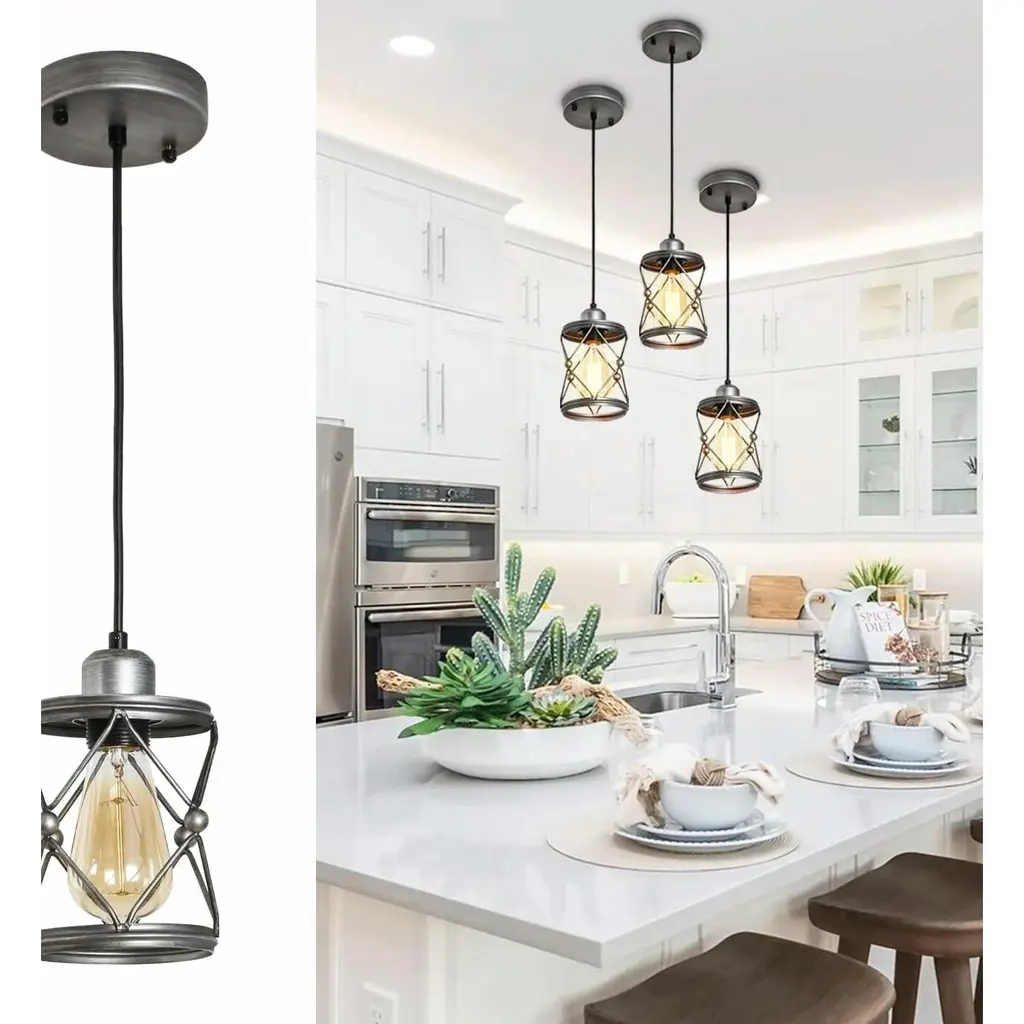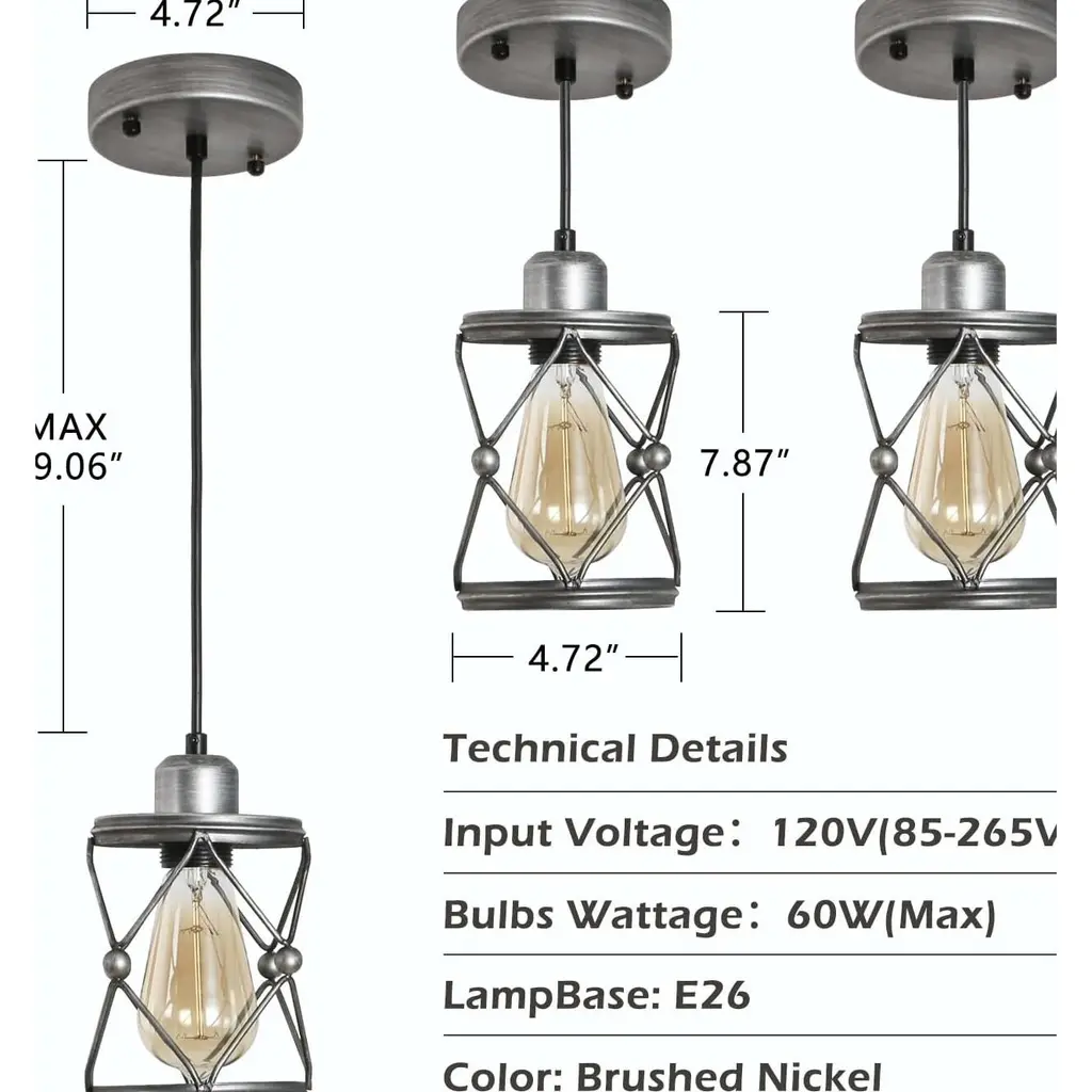 Rustic Metal Pendant Light - Adjustable Hanging Farmhouse Fixture - Brushed Nickel - 8" Wide - Silver - Silver