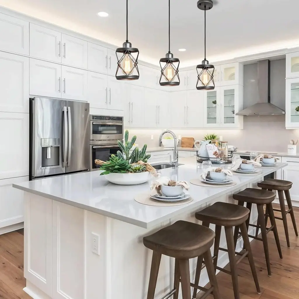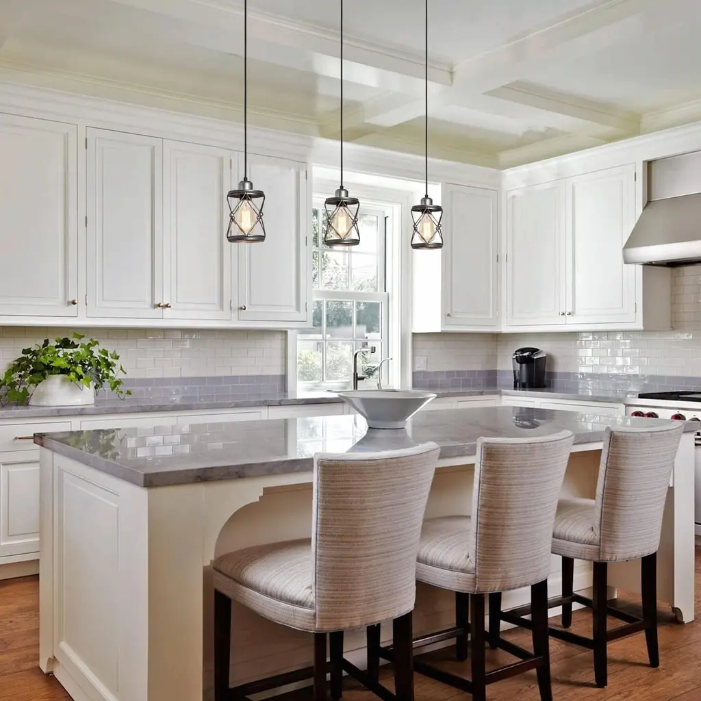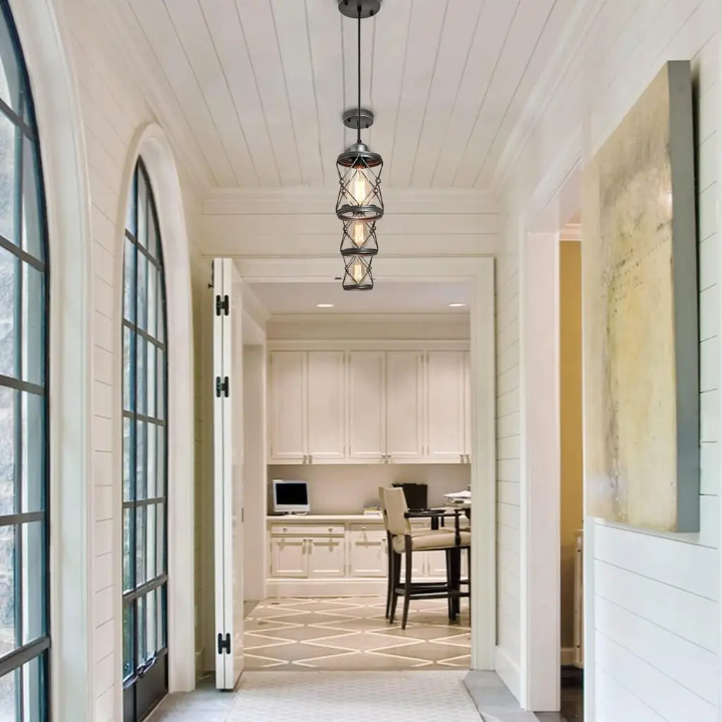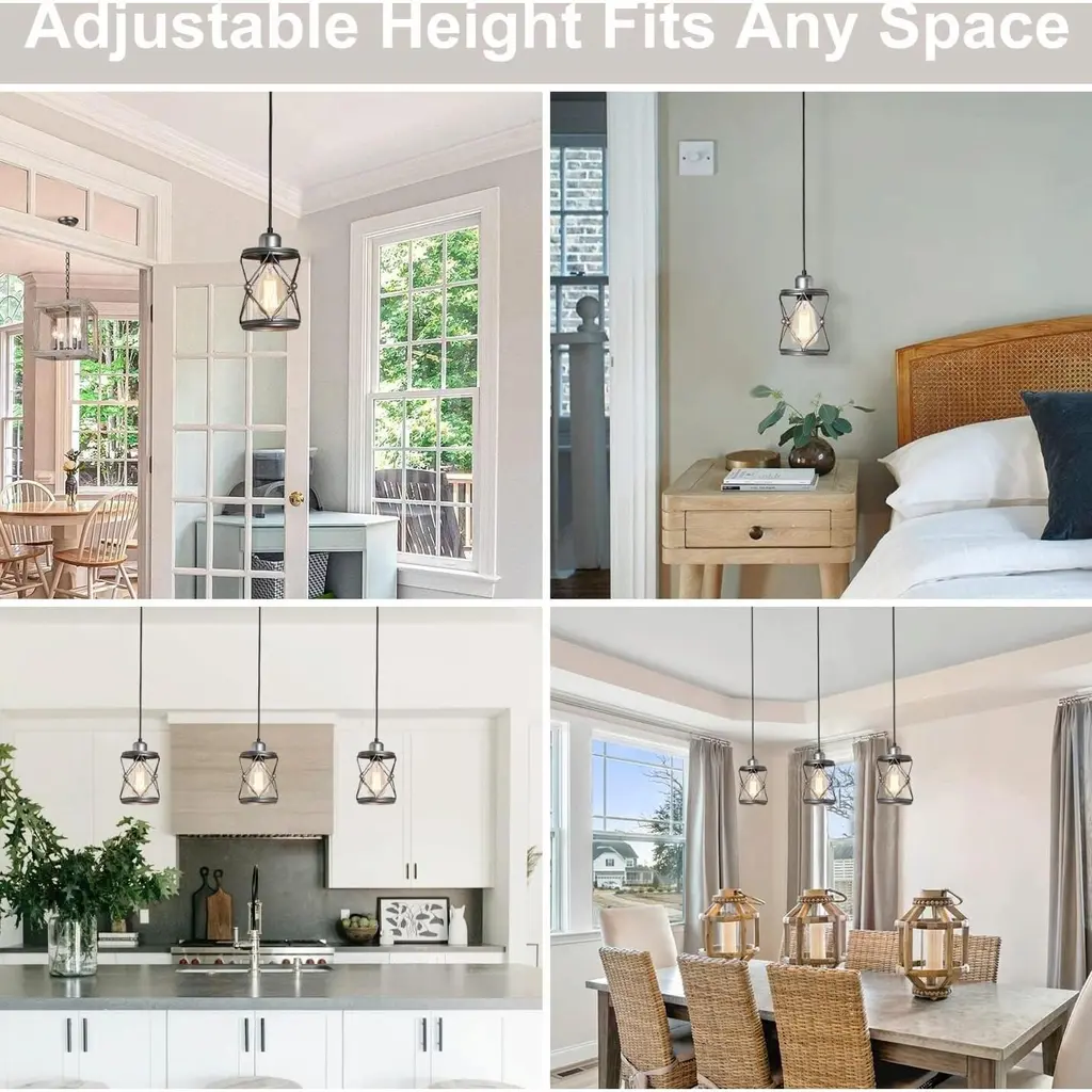 Rustic Metal Pendant Light - Adjustable Hanging Farmhouse Fixture - Brushed Nickel - 8" Wide - Silver - Silver