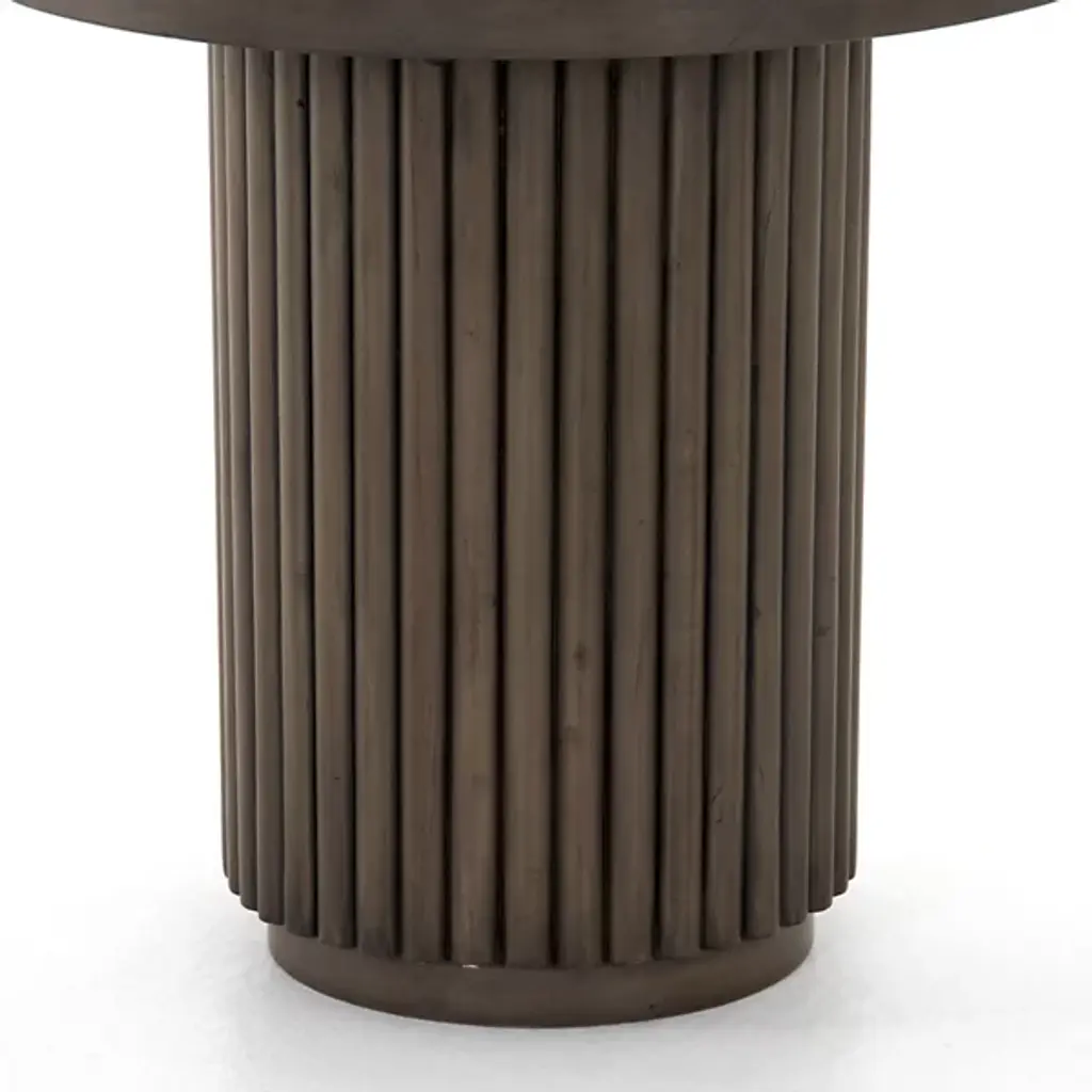The Rutherford End Table from Four Hands drew inspiration from Jaipur's regal, opulent palaces. It is crafted using a blend of reclaimed woods, and its exquisite form boasts a rounded top and base adorned with vertical reeding, creating a conversation-worthy masterpiece. Channel the grandeur of Jaipur's majestic palaces into your space with this remarkable end table, an embodiment of history and elegance for the modern setting.