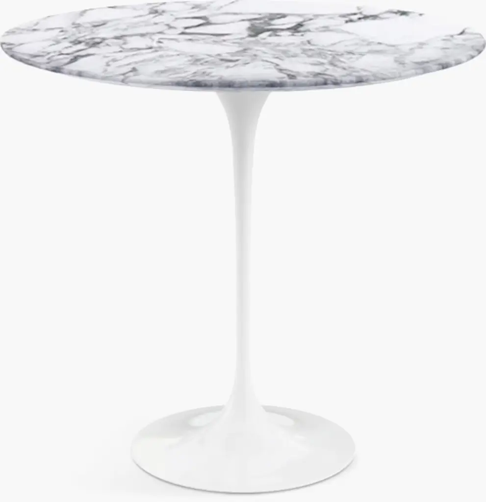 Architect Eero Saarinen was a genius at creating expressive sculptural forms. From his TWA Terminal (now the TWA Hotel) at New York's JFK Airport to the Gateway Arch in St. Louis to his Pedestal Table (1956), there's a magic in everything he created. The Saarinen Table began with his observation that “the underside of typical tables and chairs makes a confusing, unrestful world," and as he explained in a 1956 Time magazine cover story, he was designing a new collection to “clear up the slum of legs in the U.S. home." Later that year, he completed the Pedestal Table, which stands on a gracefully shaped cast-aluminum base inspired by a drop of high-viscosity liquid. This is the authentic Pedestal Table by Knoll; it's stamped with the KnollStudio logo and Eero Saarinen's signature. Tabletop made in Italy or U.S.A., depending on material.
