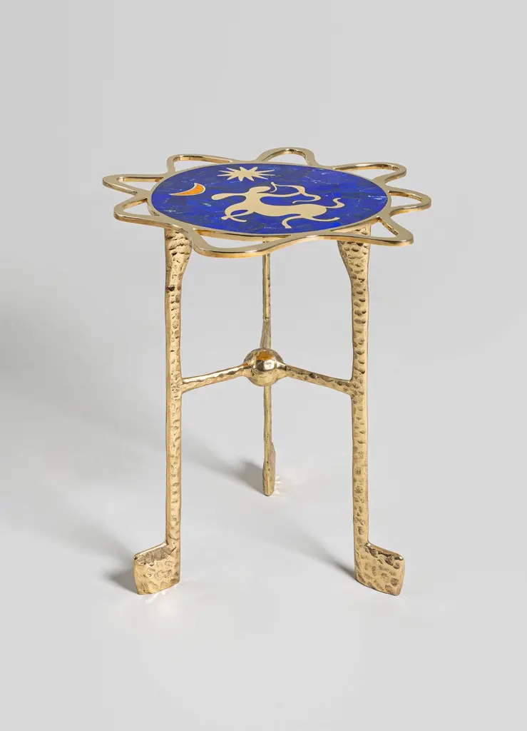 Sagittarius Side Table In Brass With Semi Precious Stones, Viya By Vikram Goyal