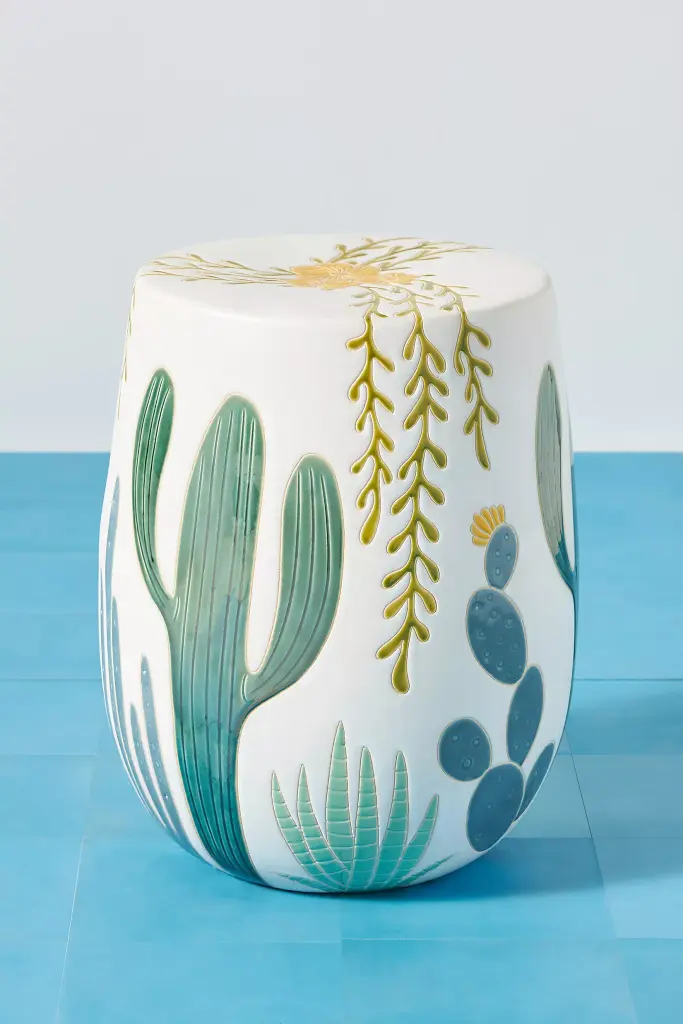 Drawing inspiration from desert cacti and succulents, this ceramic side table infuses any space with Southwestern charm. For ordering assistance and more, please contact us. For aesthetic advice and tips to help decorate your space, enjoy our complimentary home styling services.