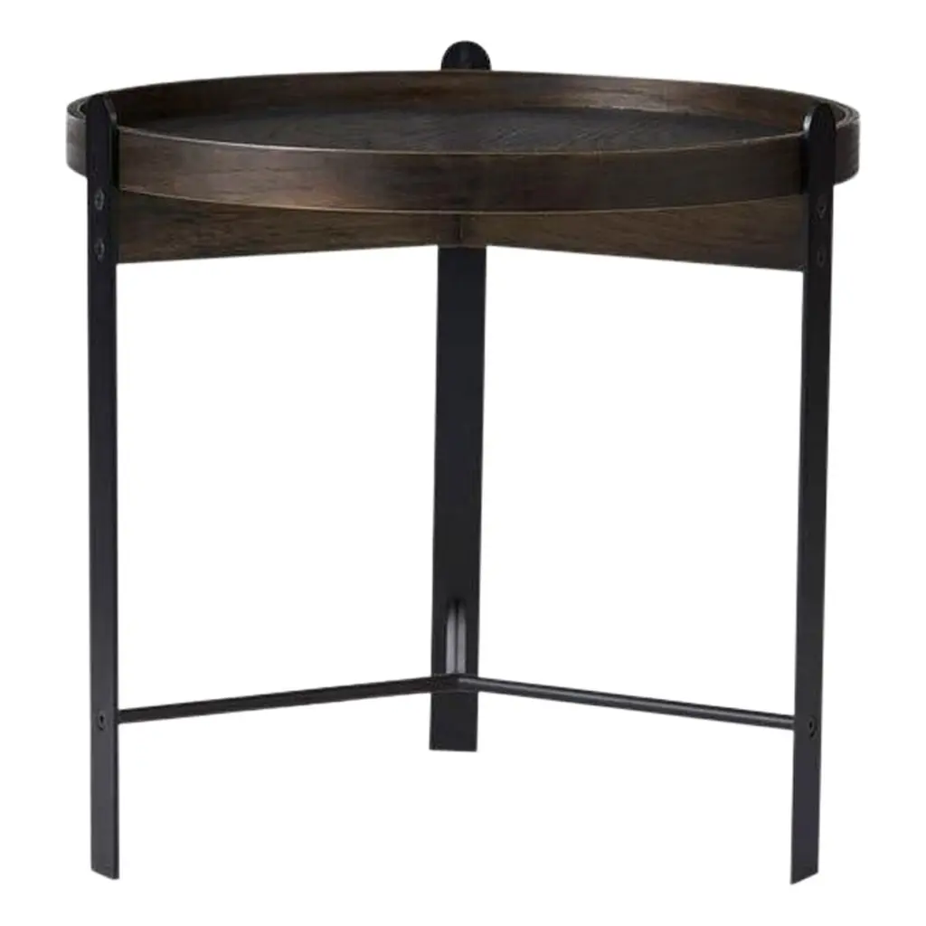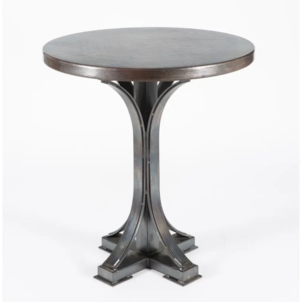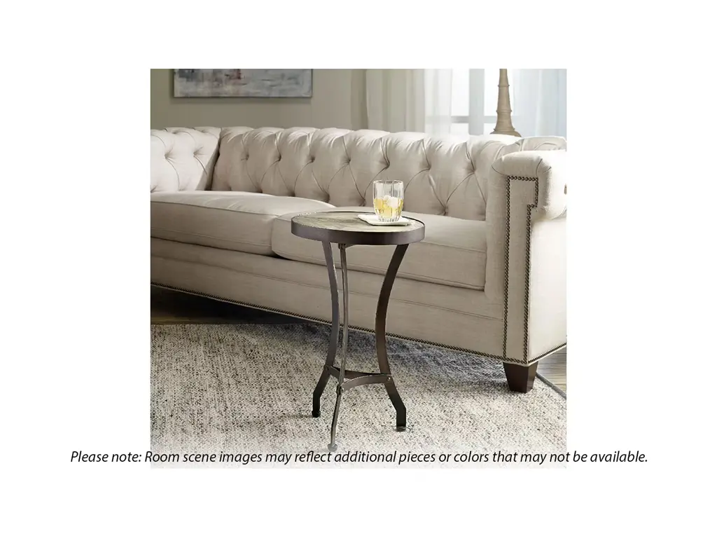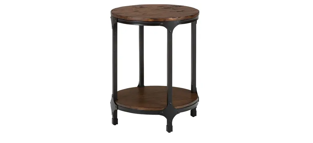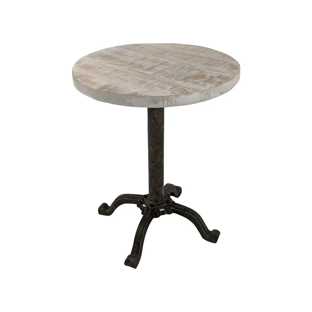 Reminiscent of charming vintage design, this Saint Armand Accent Table lends a retro-inspired touch to your living space. Standing atop a curved metal frame, this traditional-style accent table features a round top in natural color finish to complete its look.