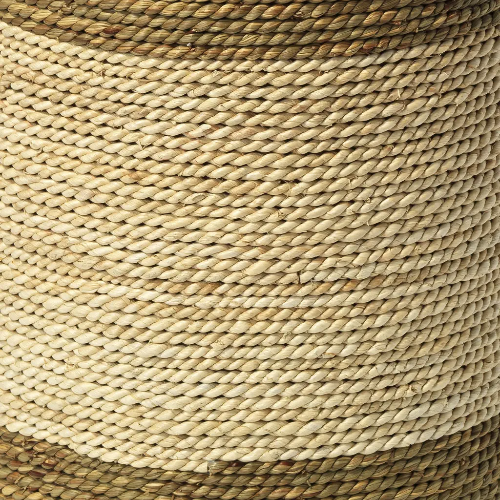 The inspiration for this breezy design is obvious, as is its beauty. But when you look more closely, what stands out in the St. Bart's side table is the craftsmanship. Each piece is artisan made and wrapped by hand with off-white rope from sustainably harvested corn straw. Then for strength and stability, each is topped with a substantial slab of tempered glass. To honor the intrinsic beauty of the natural material, it is allowed to take center stage, and any flaws or fraying is not only celebrated but considered an integral part of the design.