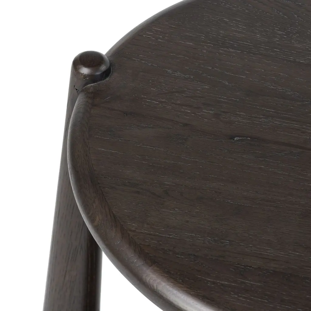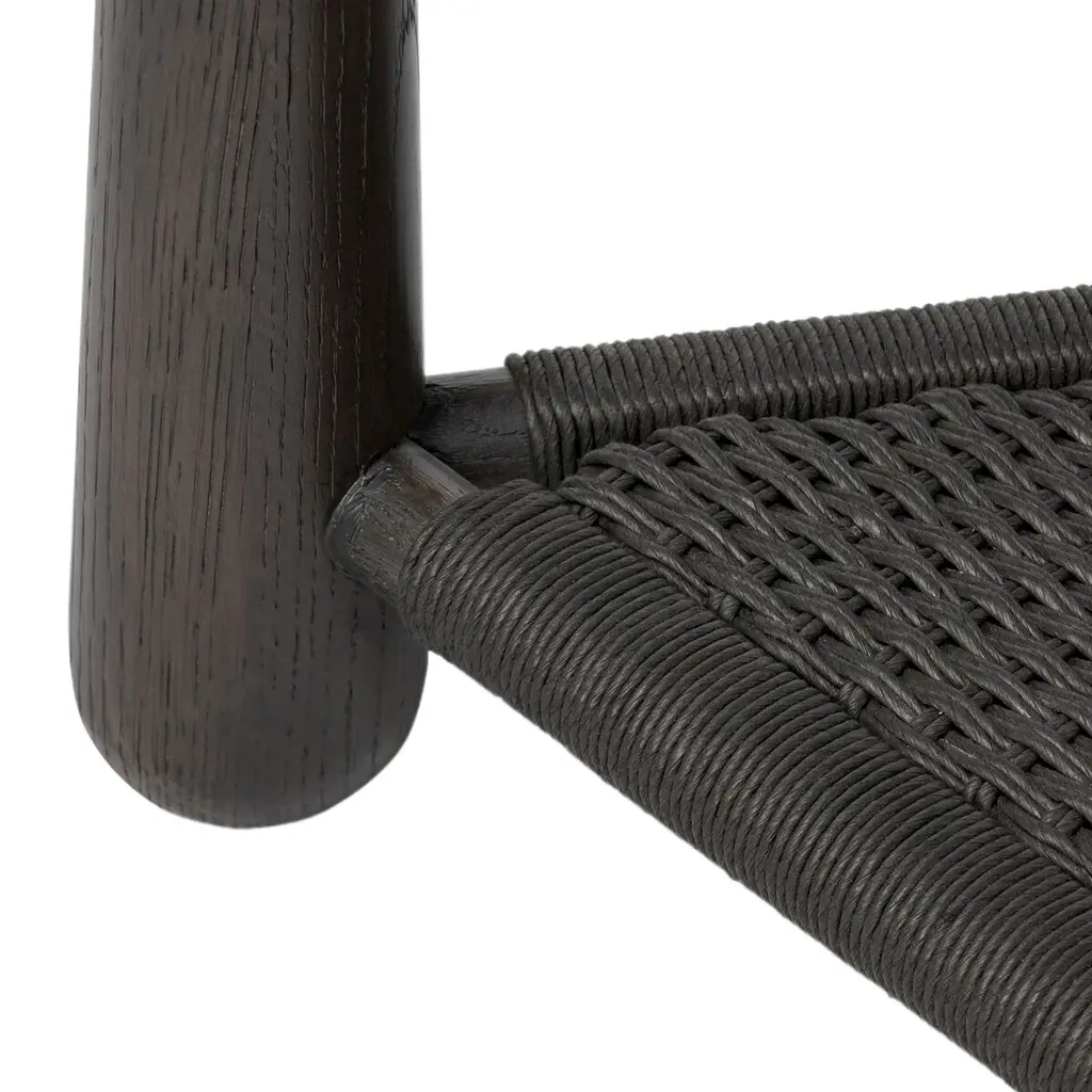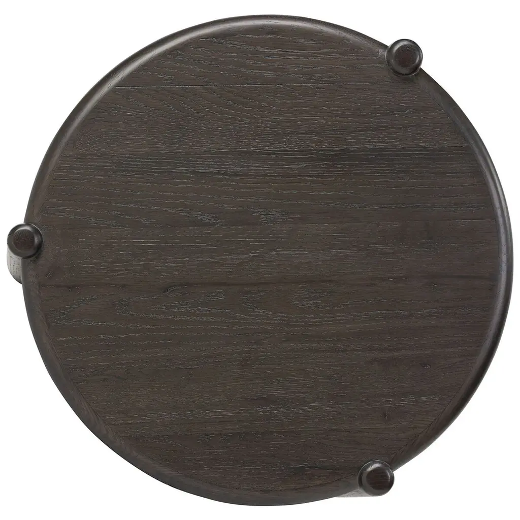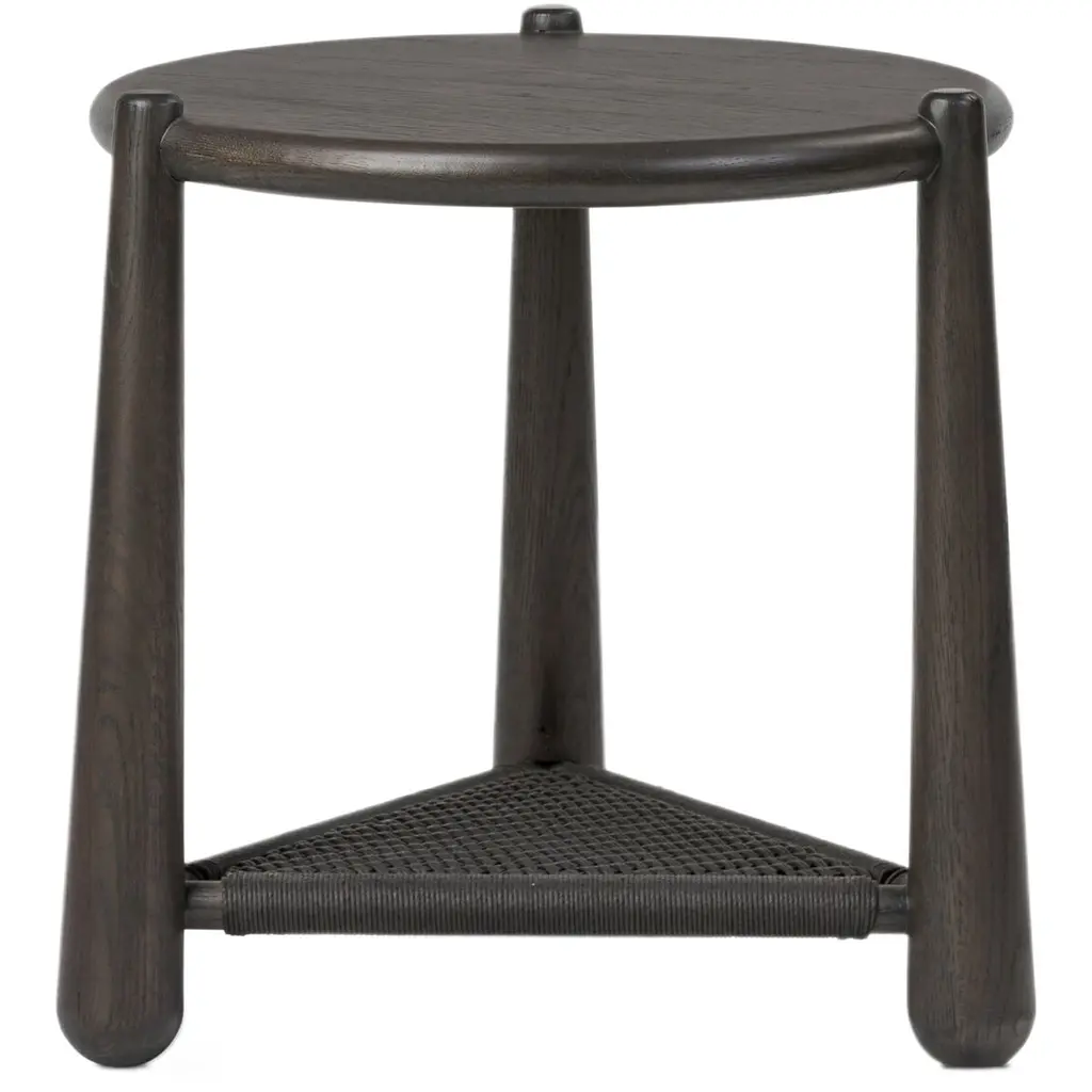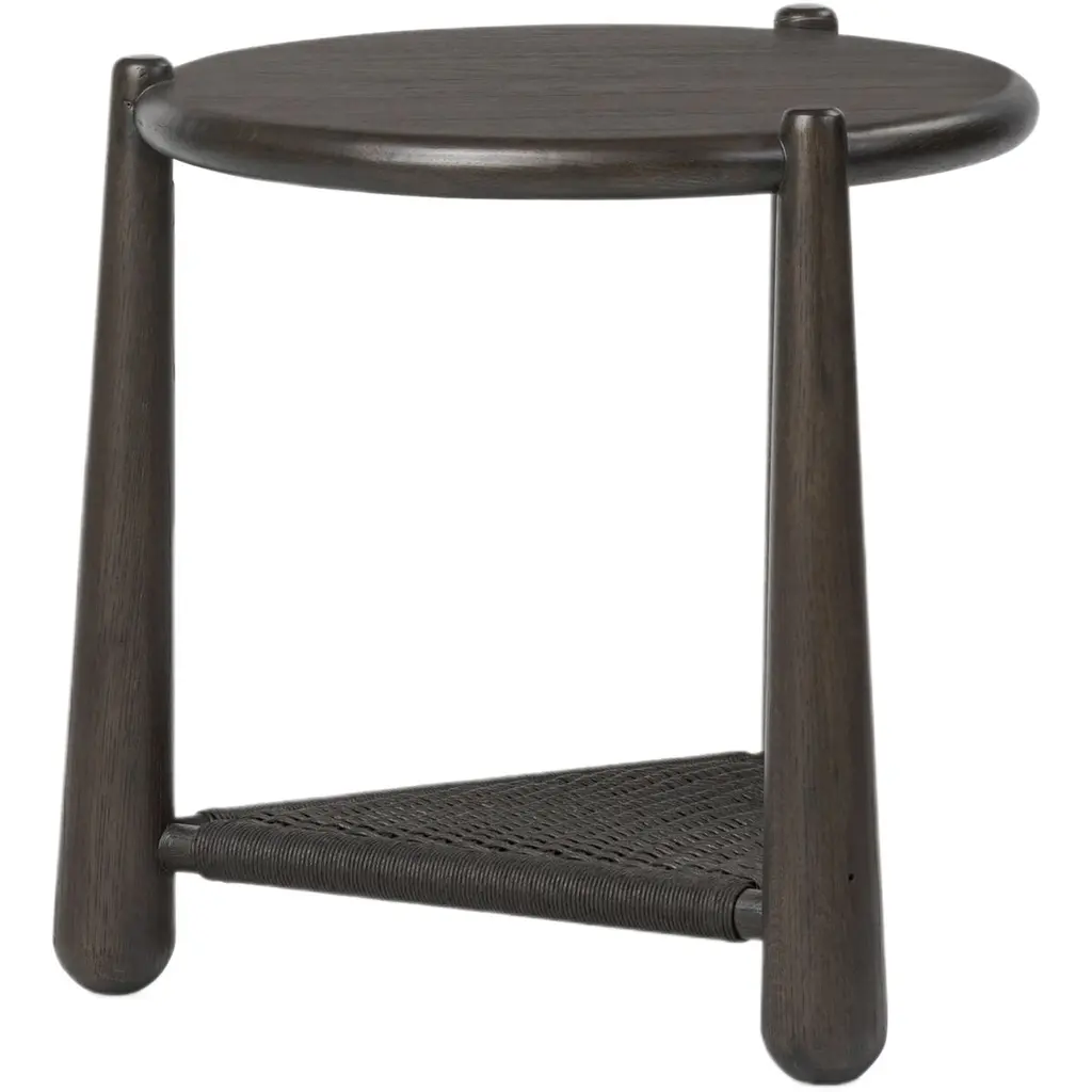 Mix materials for intrigue with this rounded, two-tier end table. Crafted with attention to detail, it features a top tier showcasing heavy graining and natural knots, while a lower shelf of woven paper cord adds texture and storage. Perfectly sized to keep your favorite drink or book within reach, this piece is a result of a design collaboration by Amber Lewis and Four Hands.