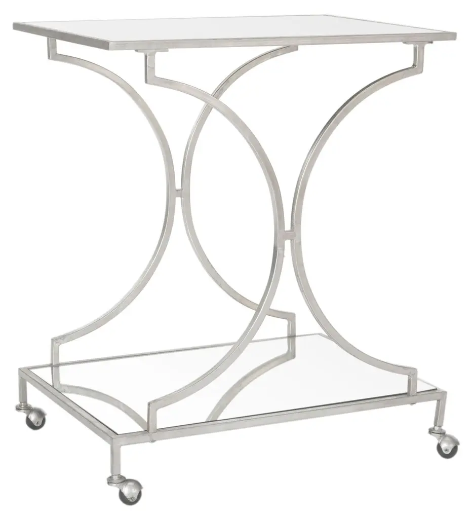 At home in virtually any style of decor, this side table is hand-forged of iron with an elegantly curved stretcher and a silvery finish. Topped with a beveled glass inset.