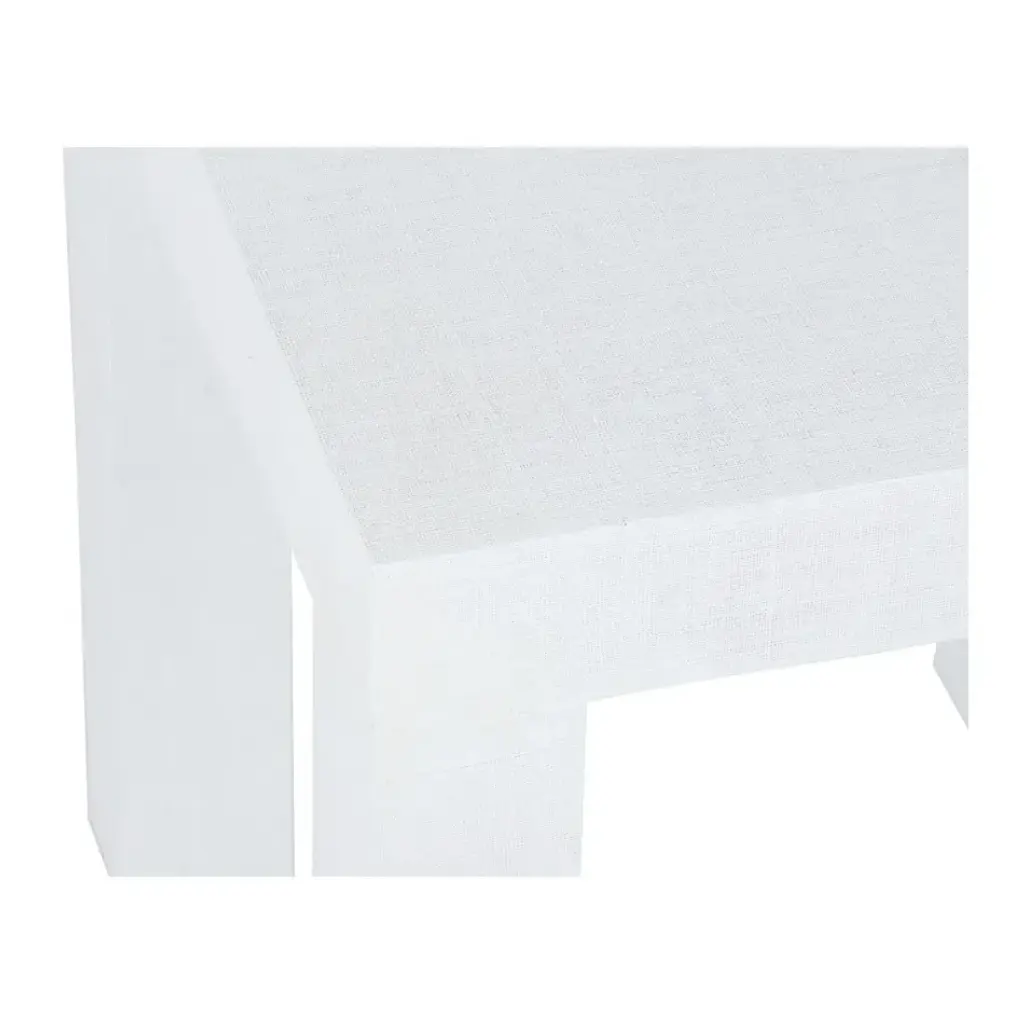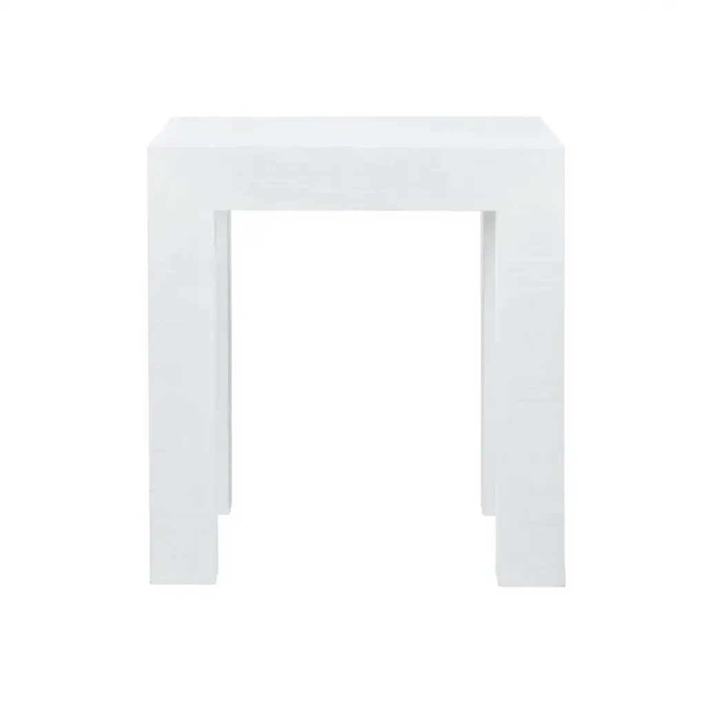 CLASSIC LINES MAKE THIS WHITE RAFFIA WRAPPED SIDE TABLE EASY TO USE IN BOTH MODERN AND TRADITIONAL SETTINGS. IT CREATES A FRESH TAKE ON THE CLASSIC PARSONS TABLE AND WILL NEVER GO OUT OF STYLE. DESIGNED BY JAMIE MERIDA.