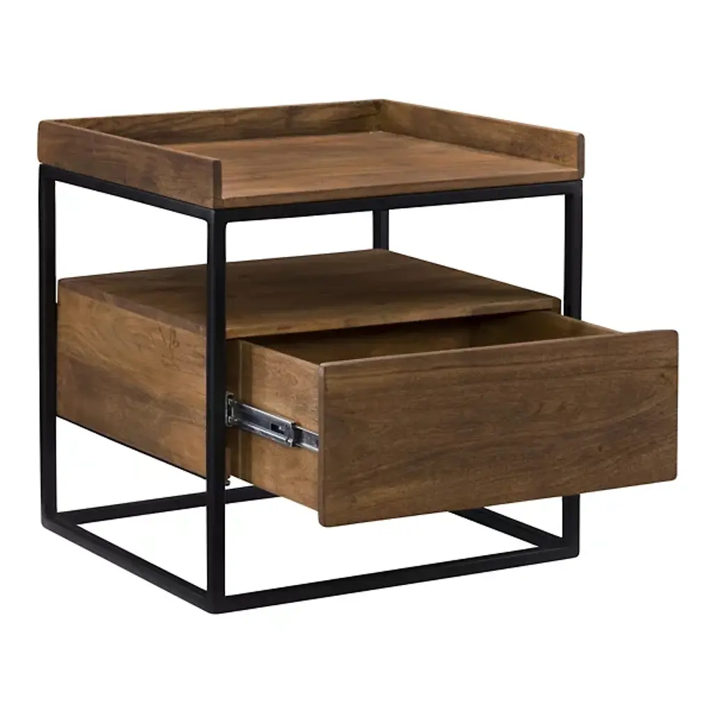 The Santino Side Table from Huxe effortlessly combines elegance and functionality with its open iron frame, solid acacia tray, and shelving. The iron frame adds an industrial touch while ensuring stability and durability. The solid acacia tray and shelving showcase the natural beauty of the wood, providing ample storage and display options. This piece’s versatile design seamlessly complements various interior styles, whether in a living room, bedroom, or entryway.