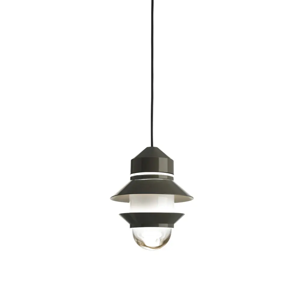 Inspired by the lanterns found on fishing boats, this collection of customizable outdoor lamps allows you to create multiple compositions. Users can choose how many shades to place on the diffuser, along with their order, position and direction. This interplay of combinations yields a rich array of direct or reflected light. The Santorini collection can be hung from the ceiling, either individually or clustered together, or they can be strung up like a garland. They also work as wall lamps or standing lamps using accessories that can easily be added.