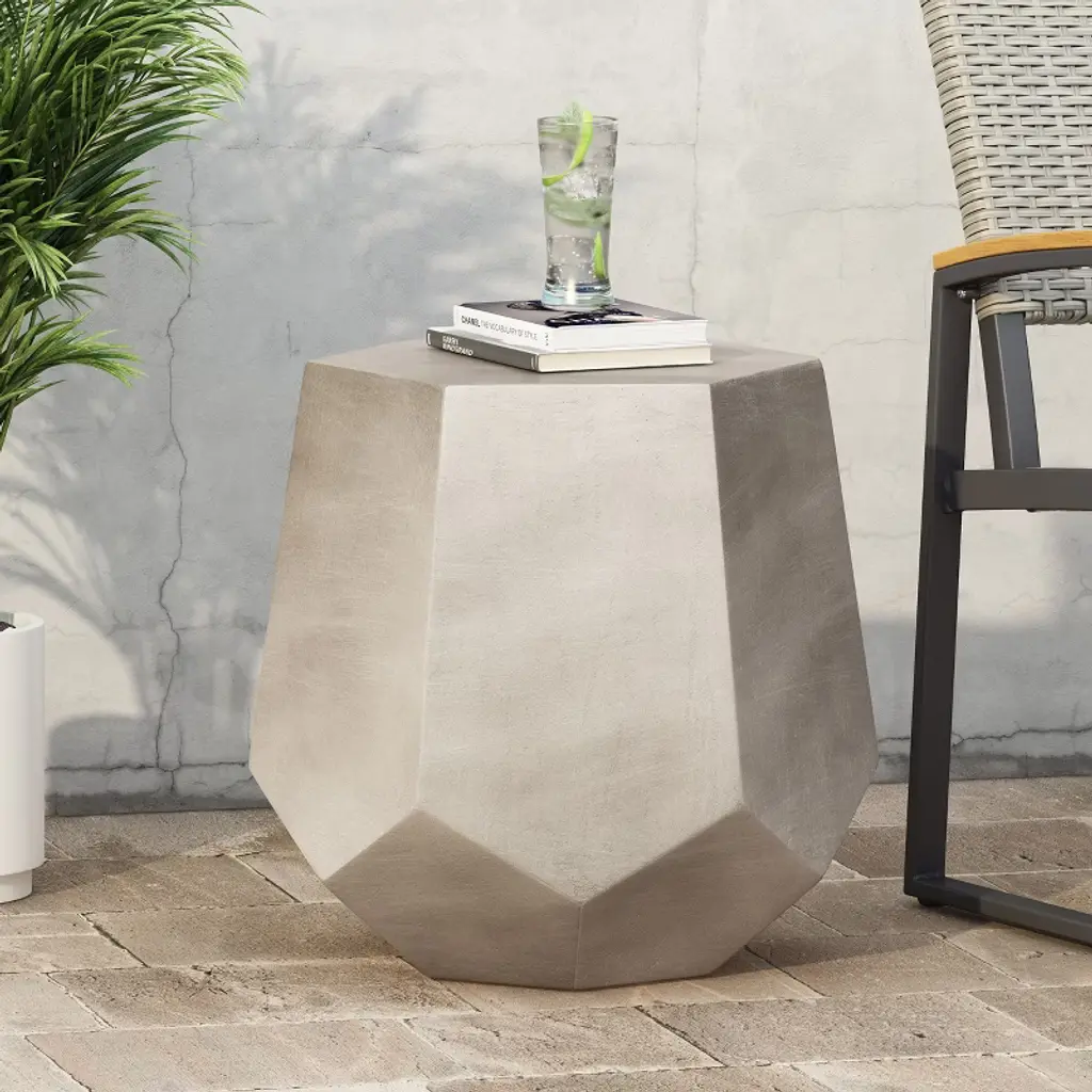 Sapphtopaz Outdoor End Table Modern Outdoor Side Table, Concrete Patio Table Small Table For Backyard, Balcony, Porch, Geometric