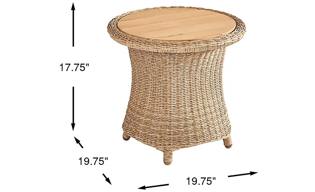 From the first breath of spring through the breezy comfort of autumn and beyond, the Sarina Bay collection brings the pleasures of the season to life. A powder-coated aluminum frame wrapped in all-weather wicker showcases a radiant natural color and vibrant texture in the sweeping curves of this end table. Completing the piece is a slatted solid teak tabletop.
