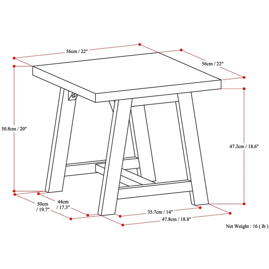 Handcrafted with care using the finest quality solid woodHand-finished with a Distressed Grey finish and a protective NC lacquer to accentuate and highlight the grain and the uniqueness of each piece of furniture.Features a simple and extra thick table top surface and sturdy sawhorse supportsSturdy sawhorse supportsStyle evokes an era long past with its industrial style roots and retro design elementsCan also be used in the bedroom as side tables.