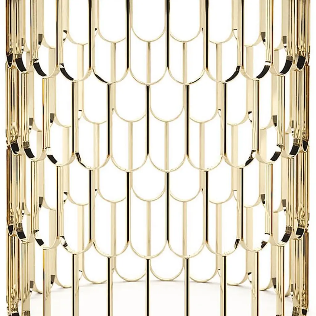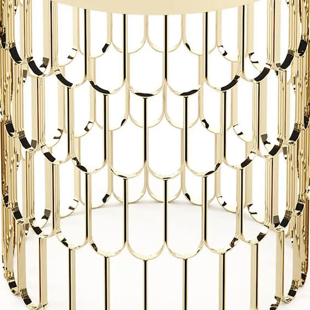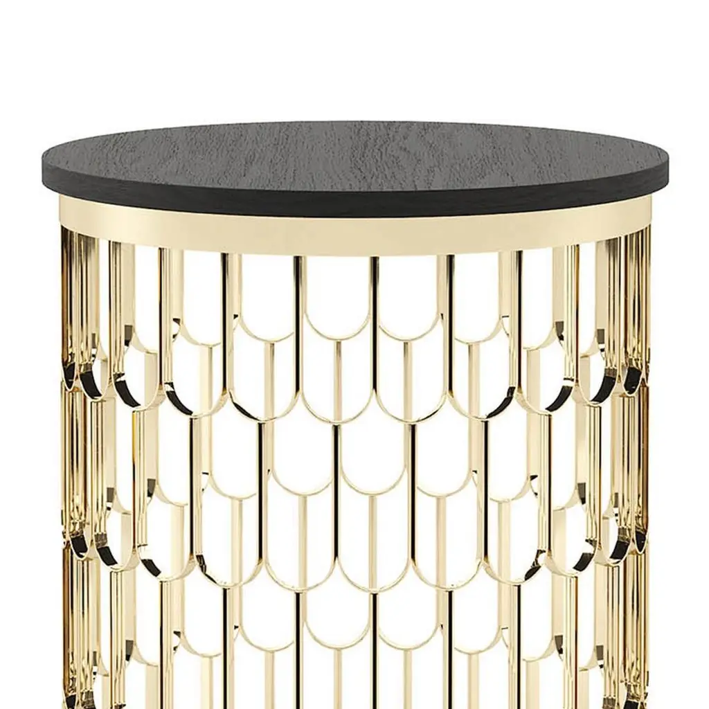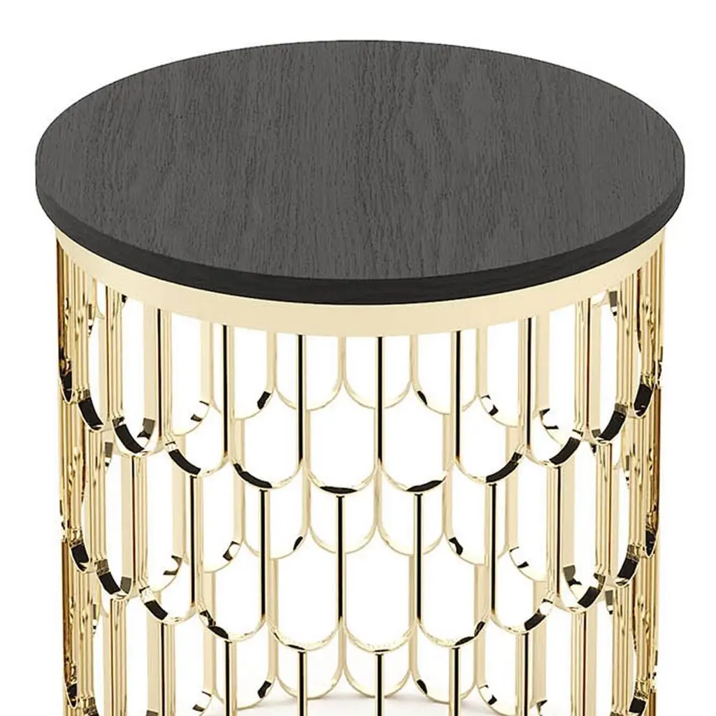 Side table scales with structure inpolished stainless steel in gold finish.With smocked oak matte top
