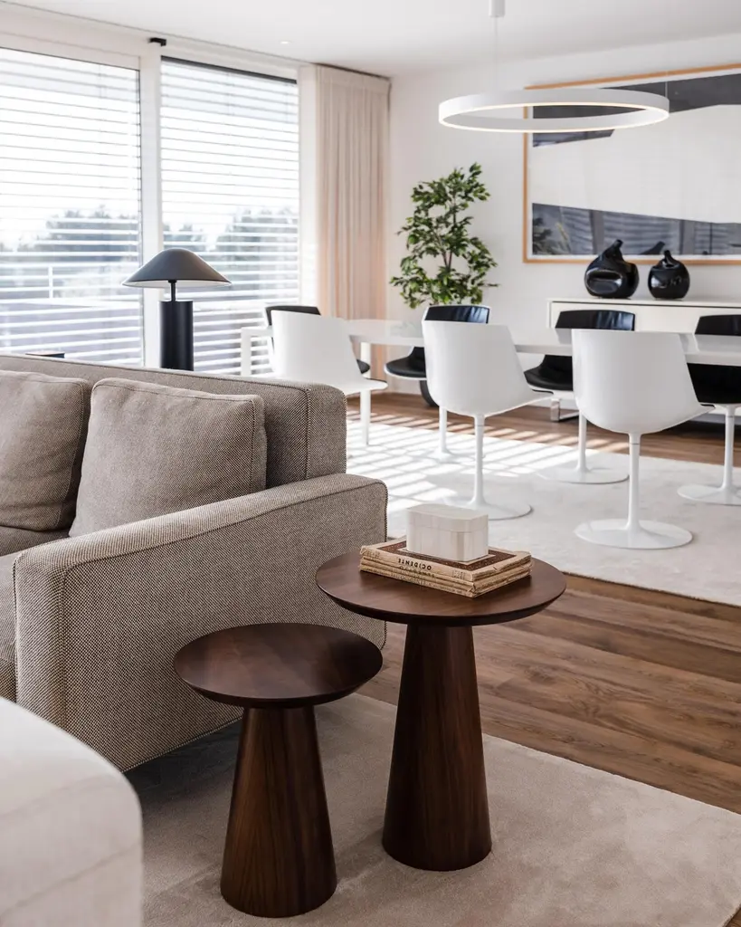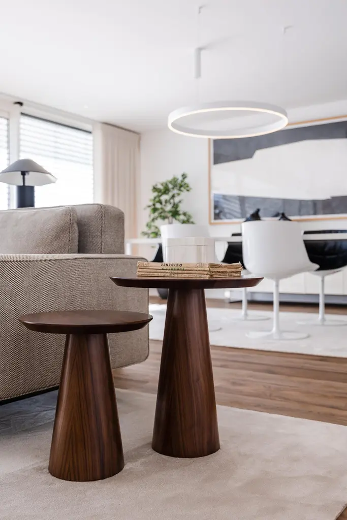 Measurement UnitsHigh Table - D 39 x H 55 cmLower Table - D 47 x H 40 cmA collection that lives to contour the natural forms of the materials. A Scandinavian style that prioritises simplicity and an aesthetic unconcerned with perfection. Pieces that easily make you feel good at home.Olivier side tables feature a curvilinear design line and conical structure, an expression of Scandinavian inspiration. A versatile set of two tables of different sizes, which transforms any environment. These products can be sold separately.As the product can be personalised, the image of the presentation is merely illustrative.NotesPossibility of marble and glass tops - Price on requestLacquered metal or other metals - Price on requestPossibility to sale as individually.