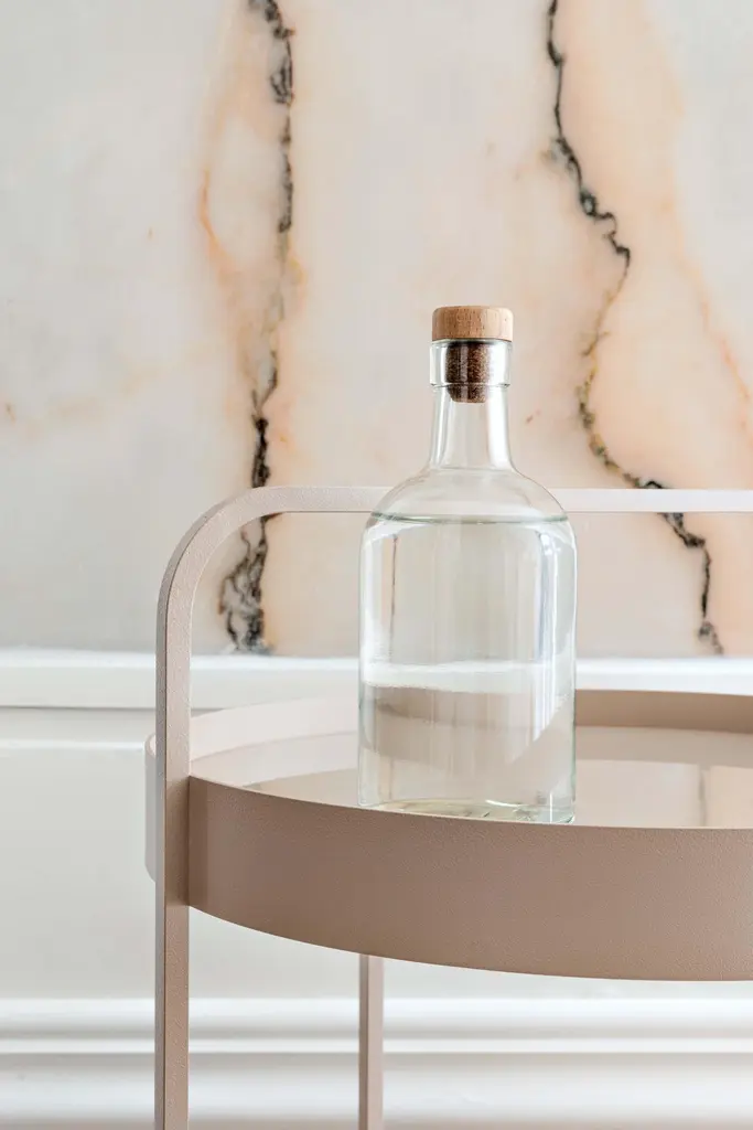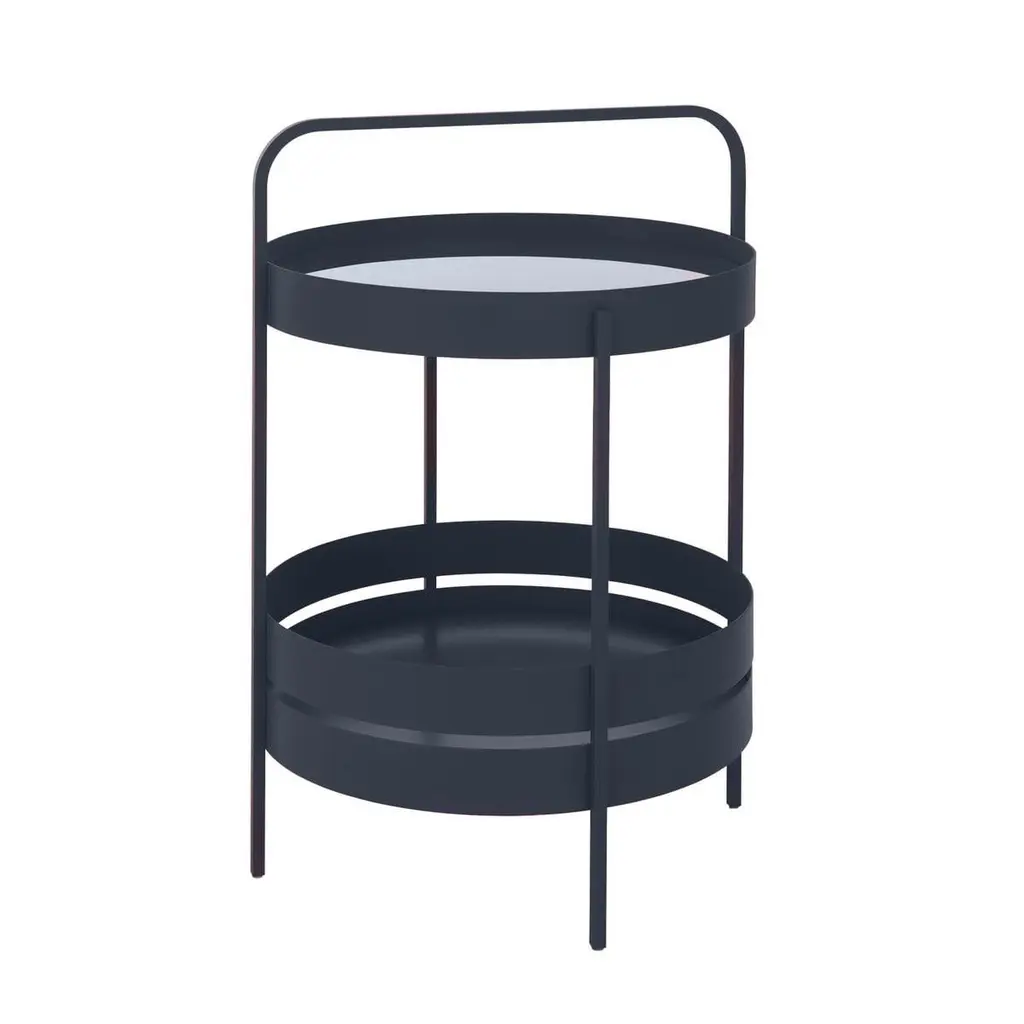 Side tablesteel, finely-structured powder-coated finish, upper shelf in clear glass, lacquered on reverse side, lower shelf in lacquered MDFStylish assistant. The ALBERT side table is puristic yet decorative, but also highly versatile. Perfect as a side table in living rooms, it also works well in hallways and home offices as a useful place to put things. Inspired by 1950s architecture, the design is compatible with any interior style. Its modern elegance makes it an eye-catcher no matter where. The powder-coated metal frame is available in rosewood, grey-white, black, tomato red or night blue. The top shelf is made of glass, back-painted to match the rest of the table. A clear design statement, refined and convincing.