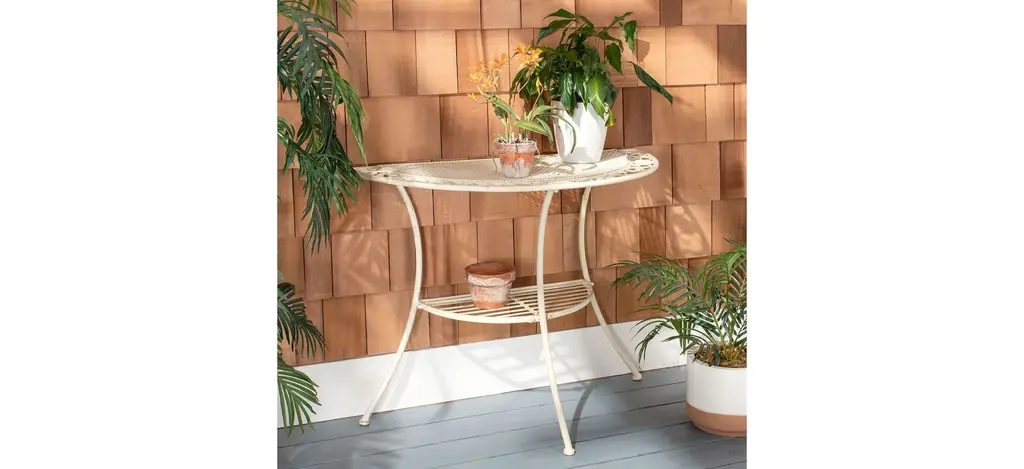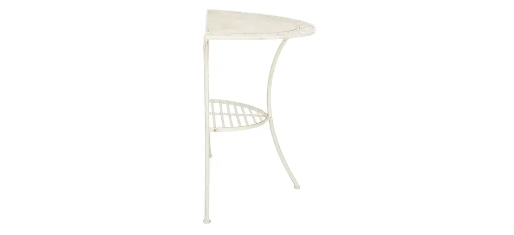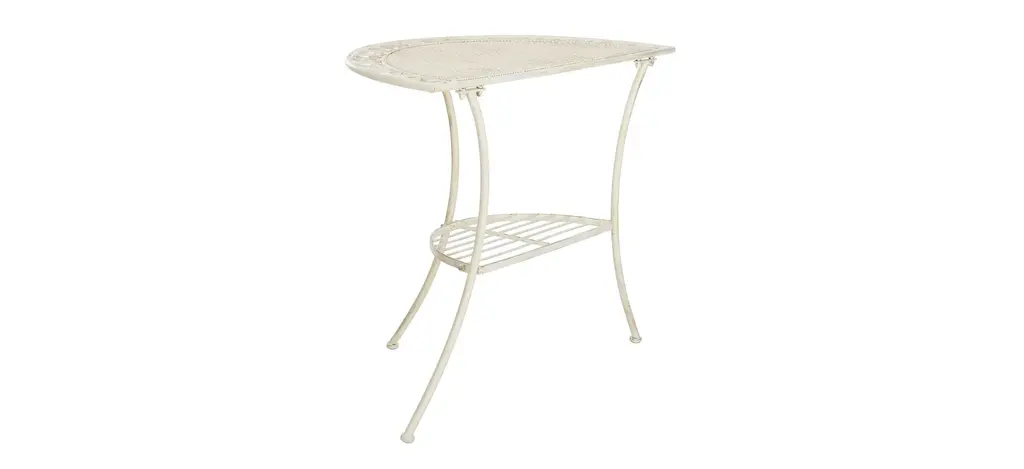 Transform any outdoor space into an entertaining oasis for family and friends with the Scully outdoor end table. Victorian inspired scrollwork and fine Baroque details in pearl white lend it a rich, classic ambiance, while its two tiers and demilune design make Genson the ideal space saving solution.