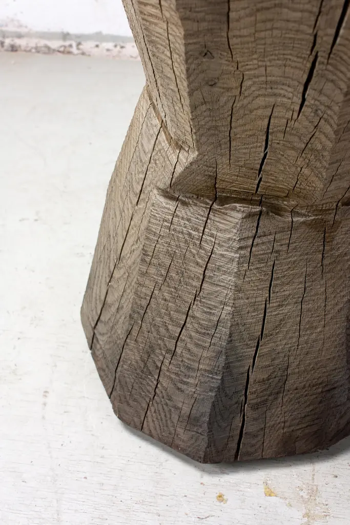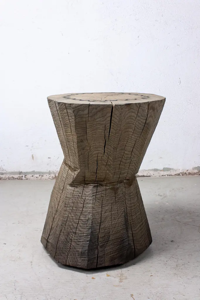 End table CT-6 by Denis Milovanov x Soha Concept(Side table, end table, stool, pedestal...)Material: Solid oakDimensions: H 50 x 40 x 40 cmWarm furniture's made by Russian designer Denis Milovanov founder of Soha Concept studio. Simplicity of shapes. Authentic material.Wooden items are created from oak and are boiled in oil from several days to several weeks, to achieve a natural wood coloration from a dark brown to a complete black color. Patterns are applied solely by chain saw.Unique piece made to order.