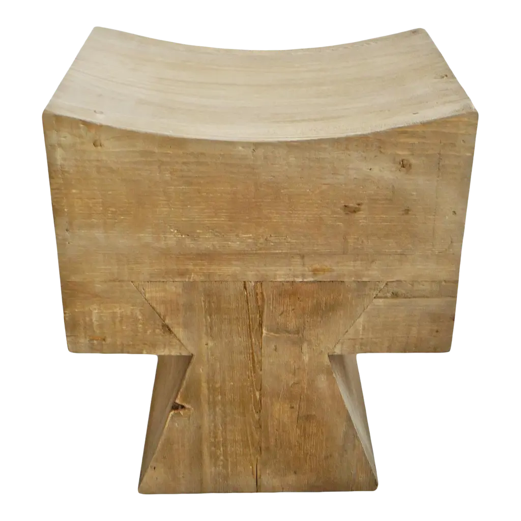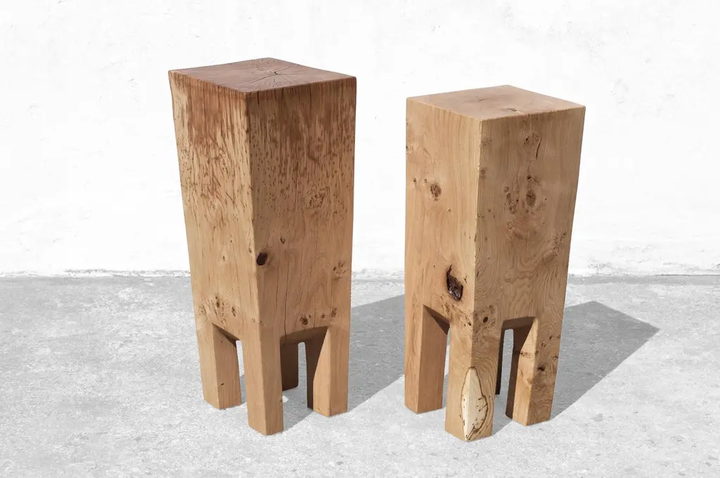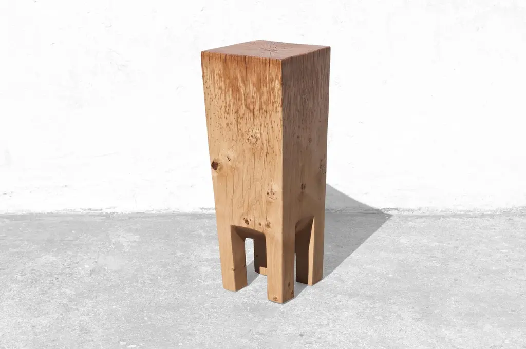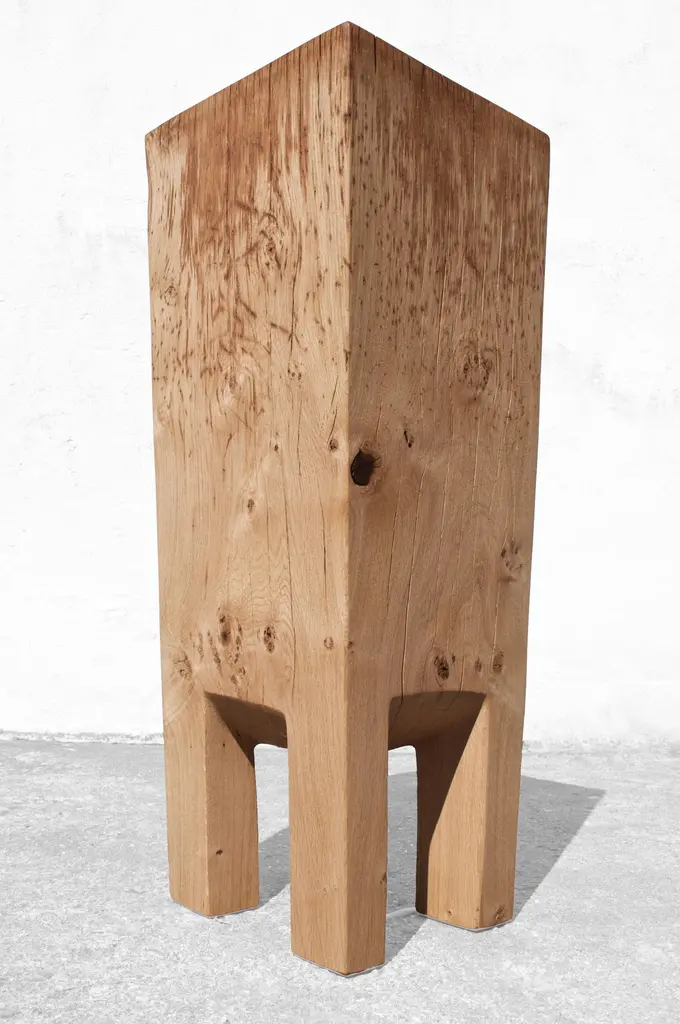 Sculpted side table by Jörg PietschmannDimensions: H 86 x W 34 x D 33 cm In Pietschmann’s sculptures, trees that for centuries were part of a landscape and founded in primordial forces tell stories inscribed in the memory of their fibers.The forms Jörg Pietschmann pares from ancient trees are extensive and astonish with their physical presence, a combination of elegance and primeval nature. Pietschmann’s sculptures are monuments to the trees from which they derive.Being endowed with the ruggedness of primeval matter gives them a veritable vitality: figures that appear to have grown into their sculptural form of their own accord. But Pietschmann’s tangibly present bodies have undergone a considerable degree of metamorphosis.In order to generate these unique tree specimens he examines the tree’s morphology and intrinsic inner map until the courses of its grain, of a curve, knots and cracks concur with his projections. The exploratory process is accompanied by constant modification, giving at the start of each new piece no more than an intimation of the figure that will later emerge. In their completion, Pietschmann’s sculptures once more become universal form.