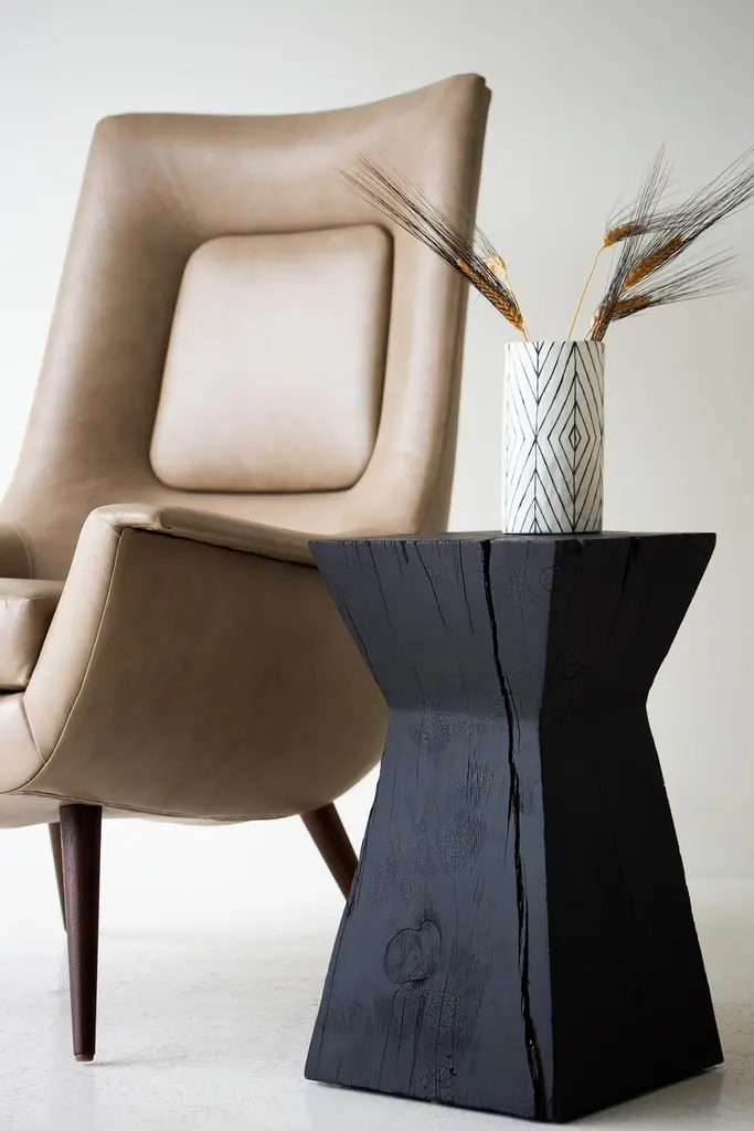 Please scroll down to read IMPORTANT INSTRUCTIONS ABOUT OUR STUMPS before purchase!Why buy Bertu Home stumps?KILN DRIEDOur stumps all go through a drying process in our kiln, sometimes for up to a month. We are meticulous with bringing each and every log to a specific moisture level. This process helps with major cracking, long-term moisture issues, and bugs.ECO FRIENDLYIn an effort to replenish the trees we use, we plant 50+ trees a year. In addition, we practice salvage logging. Where do we source these? Some of the trees fall naturally. Some have damage from severe wind, lightning, flood, disease, or other natural disturbance so they need to be cut and removed before they fall. Others are fresh cut because people want them off their land. Salvage logging may reduce erosion, reduce intensity of future wildfires, and slow buildup of pest insects.FAMILY OWNEDThese are made from our family to yours. Quality is of utmost importance, and we hand cut, de-bark, sand, and finish every piece with care.See how we do it here.COMMERCIAL GRADEThese stumps are meant to be loved and USED. Each is finished with a durable commercial-grade finish. This finish is tough enough for spills, kids, and holds up in hotel and hospitality settings.This Sculpted Stump Table - The Sol - 2222 is hand sculpted in the heart of Ohio out of a solid truck of maple. The side table can be used for a nightstand, a stool, or grouped together for an architectural larger table. They are great next to a chair, sofa, or bathtub. Each stump is made from a solid trunk of maple and is hand sawed, sanded, and sprayed with a natural commercial grade finish. Every part of the process is handled with care - even the bark is hand chipped and sanded to honor the unique markings of each tree. Note: These are REAL tree stumps. Natural movement and cracking is normal. Cracks can even be as big as 1/2" wide due to proper drying in our kiln. The idea is that most of the cracking happens before it is sprayed, shipped, and in its new home. These are all slightly different in character and they may vary in size - No two pieces are exactly alike. These are true pieces of art!IMPORTANT INFORMATION ABOUT OUR STUMPS...1. Please unpack your stump immediately and leave it out of any packaging. These are real pieces of wood and need to breathe!2. For OUTDOOR stumps : Though these are kiln dried and the wood can be used outdoors, sometimes when they arrive in different climates, humidity levels adjust and can affect the finish on top. We see this more often in direct sunlight. We do our very best and continue to make sure there are no issues, but we can not control climate. Solid wood and the elements are unpredictable and we will not be liable. The great thing about these logs is you can always sand them down and refinish.3. Wood naturally moves. These are solid pieces and for that reason, they are prone to cracking. You may get more cracks or bigger cracks in the first few weeks as the wood acclimates to its new home and climate.4. These stump tables have nylon glides (feet) underneath not only to make them easier to move around (they are heavy!), but also so there is nice air flow to the wood. The air flow is most effective on hard flooring. If you put these on rugs or carpeting, we suggest checking on the underside of your stump periodically to prevent any issues.5. We are not liable for any damages to property or people. If you have any concerns or questions you need to discuss, please write or call. We are always available, honest, and transparent about our products. Thank you and I hope you love these!specsPeriod/Model: New; Organic ModernSpecs: Maple, Commercial Grade FinishdimensionsH: 21"W: 11"pricing (add $80 for Shou Sugi Ban) Shipping price is per piece. If you are buying multiples, there will be additional charges.
