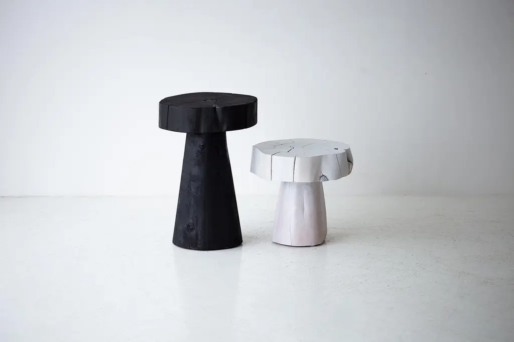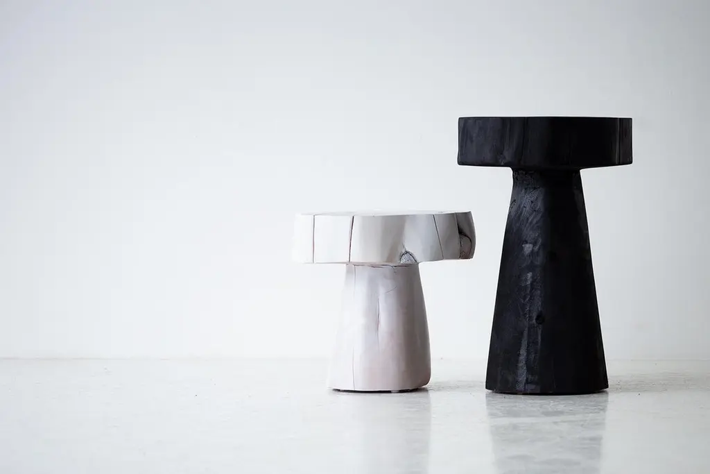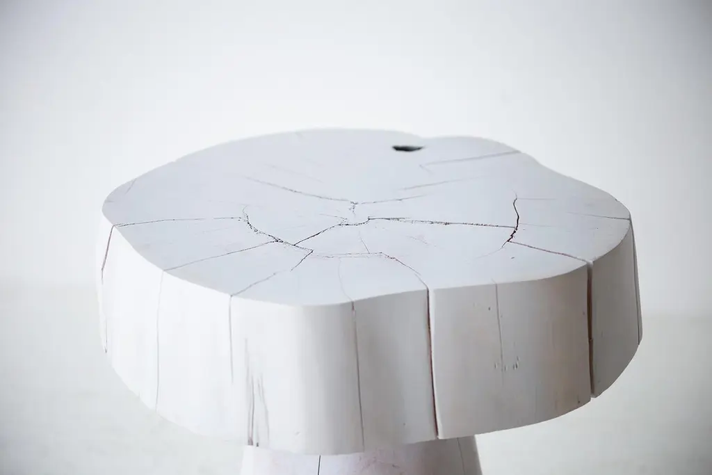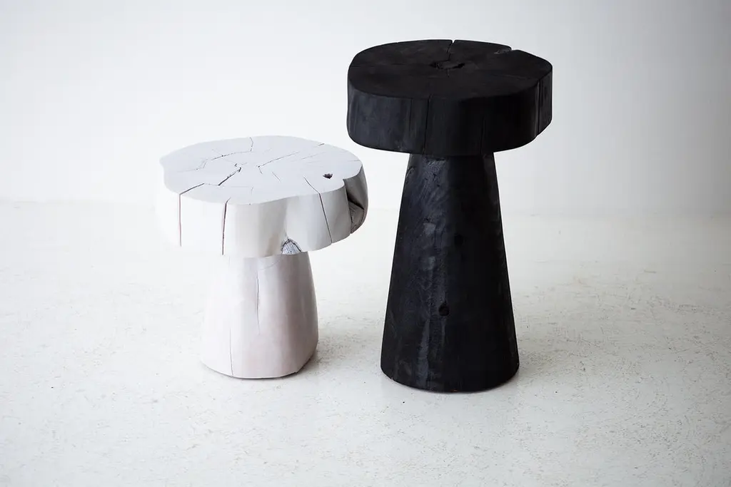 Please scroll down to read IMPORTANT INSTRUCTIONS ABOUT OUR STUMPS before purchase!Why buy our stumps?KILN DRIEDOur stumps all go through a drying process in our kiln, sometimes for up to a month. We are meticulous with bringing each and every log to a specific moisture level. This process helps with major cracking, long-term moisture issues, and bugs.ECO FRIENDLYIn an effort to replenish the trees we use, we plant 50+ trees a year. In addition, we practice salvage logging. Where do we source these? Some of the trees fall naturally. Some have damage from severe wind, lightning, flood, disease, or other natural disturbance so they need to be cut and removed before they fall. Others are fresh cut because people want them off their land. Salvage logging may reduce erosion, reduce intensity of future wildfires, and slow buildup of pest insects.FAMILY OWNEDThese are made from our family to yours. Quality is of utmost importance, and we hand cut, de-bark, sand, and finish every piece with care. COMMERCIAL GRADEThese stumps are meant to be loved and USED. Each is finished with a durable commercial-grade finish. This finish is tough enough for spills, kids, and holds up in hotel and hospitality settings.This sculpted stump table - The Summit - 0822 is hand sculpted in the heart of Ohio out of a solid truck of local red cedar. The side table can be used for a nightstand, a stool, or grouped together for an architectural larger table. They are great next to a chair, sofa, or bathtub. Each stump is made from a solid trunk of red cedar and is hand sawed, sanded, and sprayed with a whitewash commercial grade finish. Every part of the process is handled with care - even the bark is hand chipped and sanded to honor the unique markings of each tree. Note: These are REAL tree stumps. Natural movement and cracking is normal. These are all slightly different in character and they may vary in size - No two pieces are exactly alike. This finish is for indoor use but they can be sprayed with our outdoor finish for an additional $30. These are true pieces of art!IMPORTANT INFORMATION ABOUT OUR STUMPS...1. Please unpack your stump immediately and leave it out of any packaging. These are real pieces of wood and need to breathe!2. For OUTDOOR stumps : Though these are kiln dried and the wood can be used outdoors, sometimes when they arrive in different climates, humidity levels adjust and can affect the finish on top. We see this more often in direct sunlight. We do our very best and continue to make sure there are no issues, but we can not control climate. Solid wood and the elements are unpredictable and we will not be liable. The great thing about these logs is you can always sand them down and refinish.3. Wood naturally moves. These are solid pieces and for that reason, they are prone to cracking. You may get more cracks or bigger cracks in the first few weeks as the wood acclimates to its new home and climate.4. These stump tables have nylon glides (feet) underneath not only to make them easier to move around (they are heavy!), but also so there is nice air flow to the wood. The air flow is most effective on hard flooring. If you put these on rugs or carpeting, we suggest checking on the underside of your stump periodically to prevent any issues.5. We are not liable for any damages to property or people. If you have any concerns or questions you need to discuss, please write or call. We are always available, honest, and transparent about our products. Thank you and I hope you love these!SpecsPeriod/Model: New; Organic ModernSpecs: Red Cedar, Commercial Grade FinishDimensionsH: 15"W: 15" (give or take)