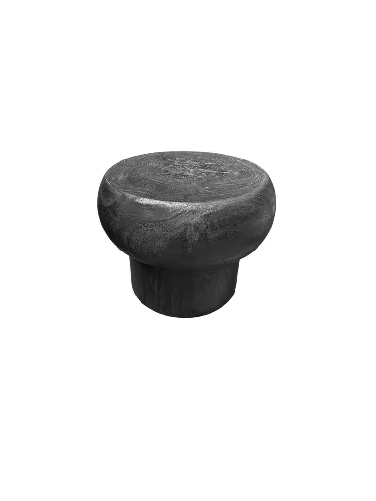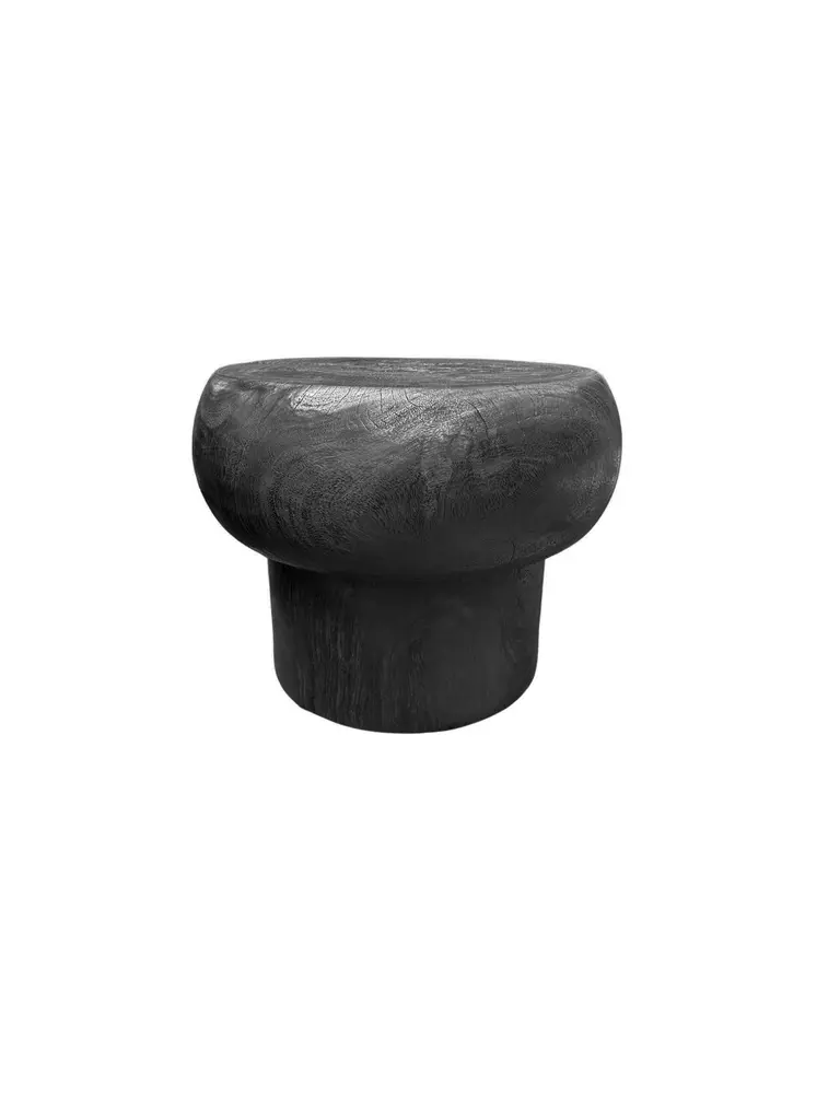 Elevate your living space with this sculptural round mango wood side table, a striking blend of artistry and natural beauty. The table features a meticulously hand-carved base that showcases intricate detailing, creating a captivating visual appeal. The burnt (black) finish highlights the wood's rich texture and grain, adding depth and character to its design. This versatile piece not only serves as a functional surface but also acts as a stunning focal point in any room. Perfect for displaying decor or enjoying a morning coffee, this side table brings warmth and elegance to your home.Dimensions; The table top Diameter; 52cm (20.47in), Diameter at widest point 60cm (23.62in) / Height 46cm (18.11in)