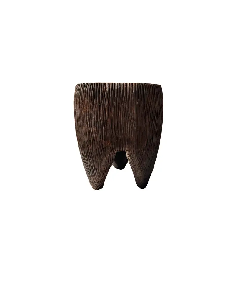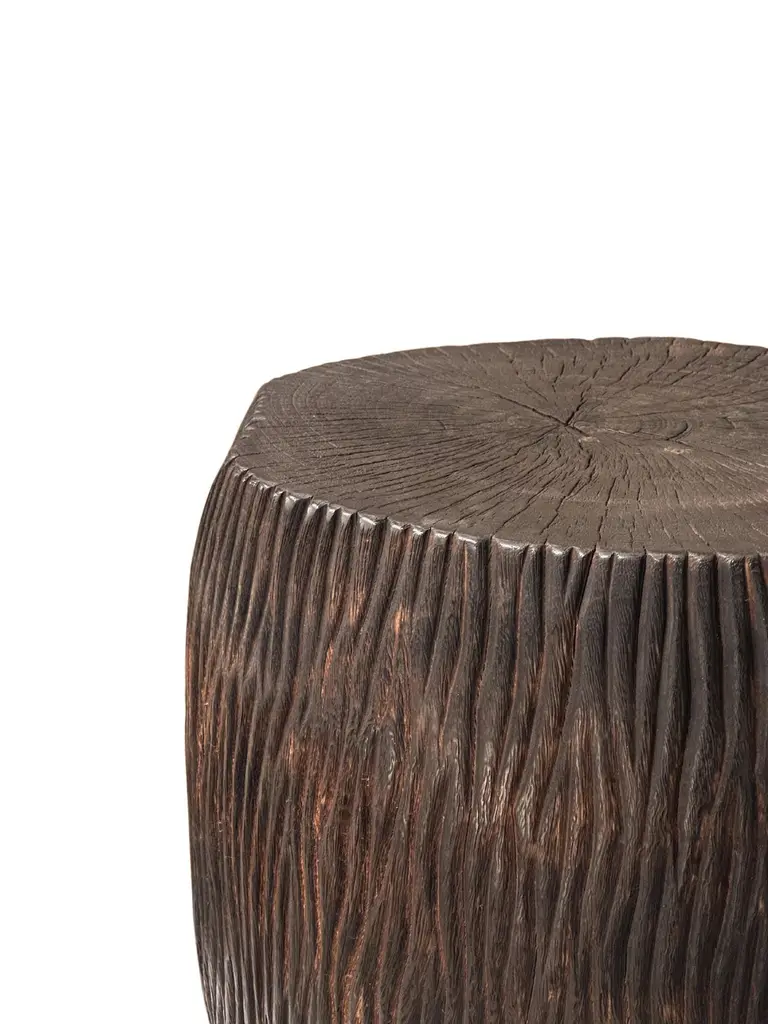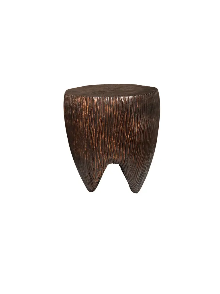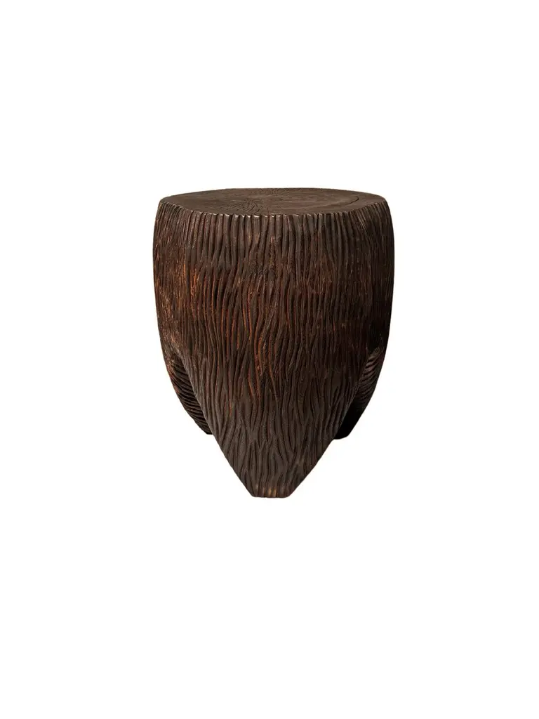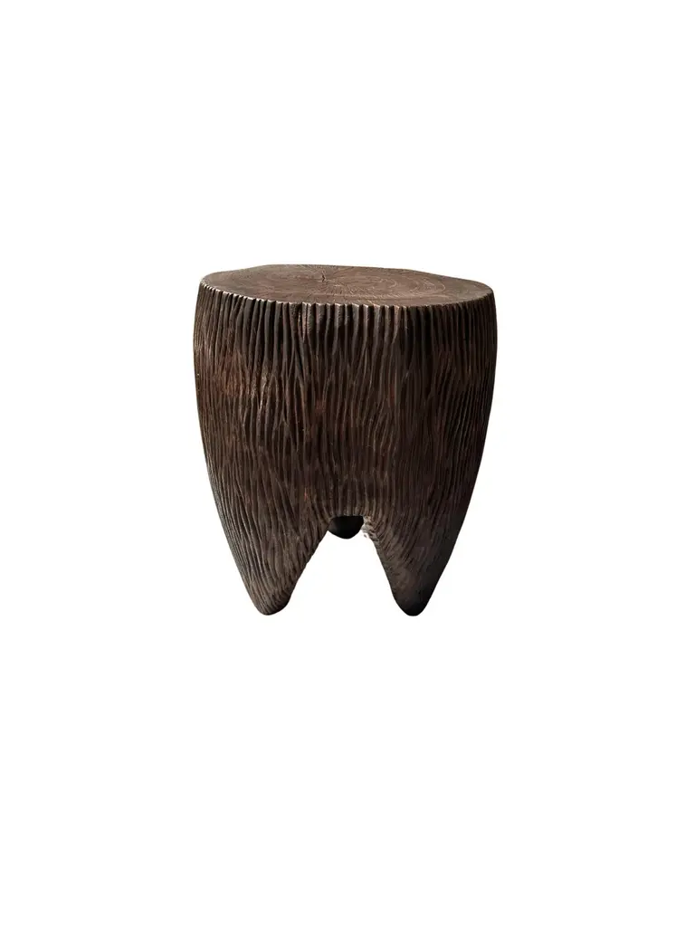 Introducing a stunning sculptural mango wood side table that beautifully blends artistry and functionality. This exquisite piece features intricately carved sides that showcase the natural grain of the wood, adding depth and texture to its design. The table stands gracefully on elegant, curved narrow legs, which lend a touch of sophistication and ensure stability. Perfect for any living space, this side table serves as a stylish accent while providing a warm, organic feel to your home decor. Its unique craftsmanship makes it not just a piece of furniture, but a true work of art. To achieve its brown pigment the wood was burned several times and finished with a clear coat.