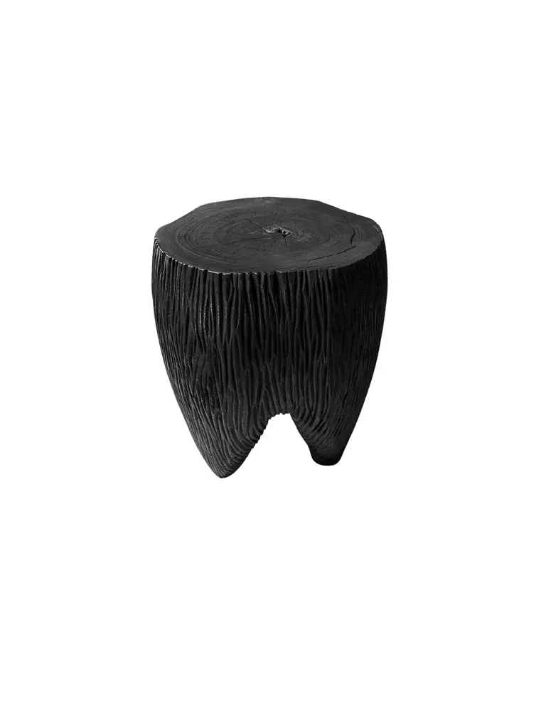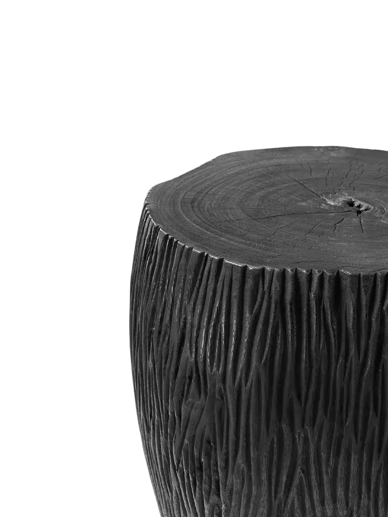 Introducing a stunning sculptural mango wood side table that beautifully blends artistry and functionality. This exquisite piece features intricately carved sides that showcase the natural grain of the wood, adding depth and texture to its design. The table stands gracefully on elegant, curved narrow legs, which lend a touch of sophistication and ensure stability. Perfect for any living space, this side table serves as a stylish accent while providing a warm, organic feel to your home decor. Its unique craftsmanship makes it not just a piece of furniture, but a true work of art. To achieve its black pigment the wood was burned several times and finished with a clear coat.