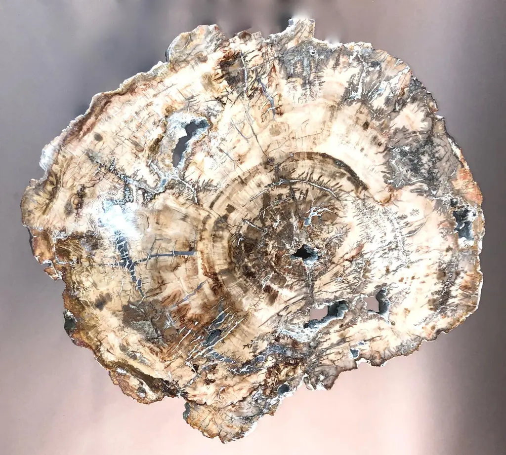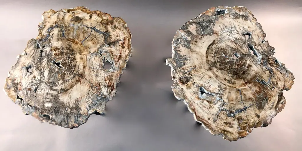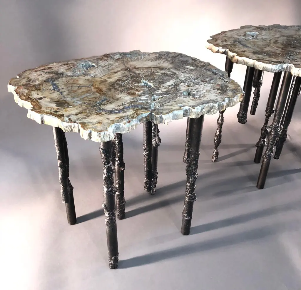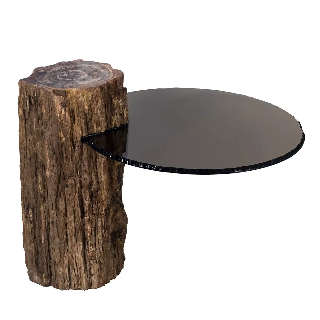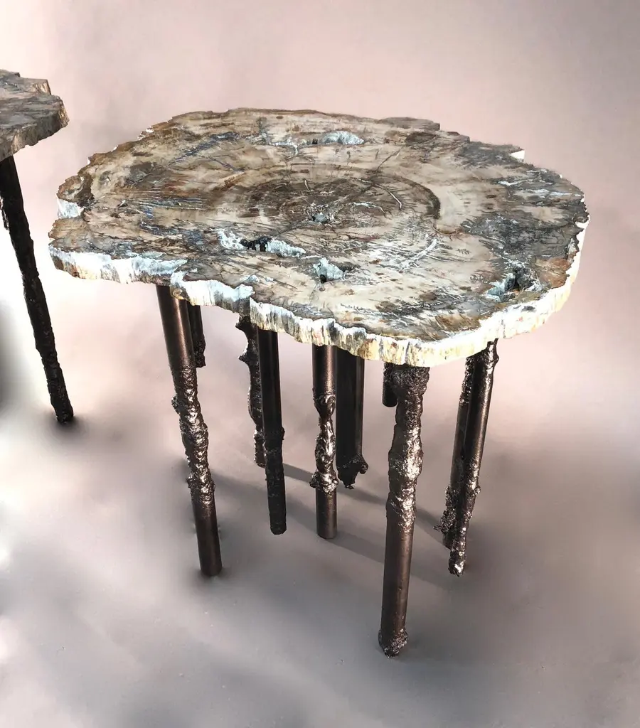 Sculptural Petrified Wood / Steel One Of A Kind Hand Made Brutalist Accent Table