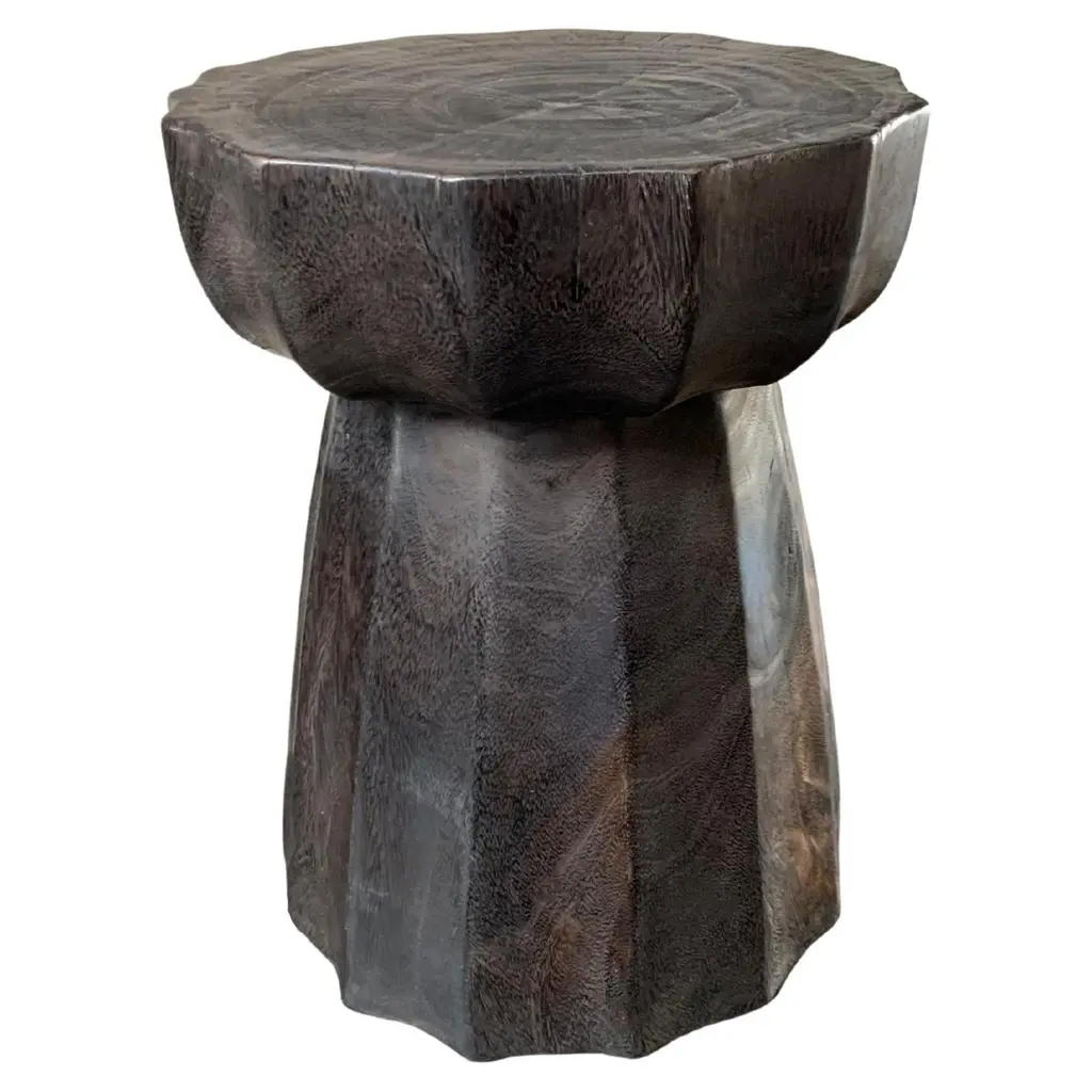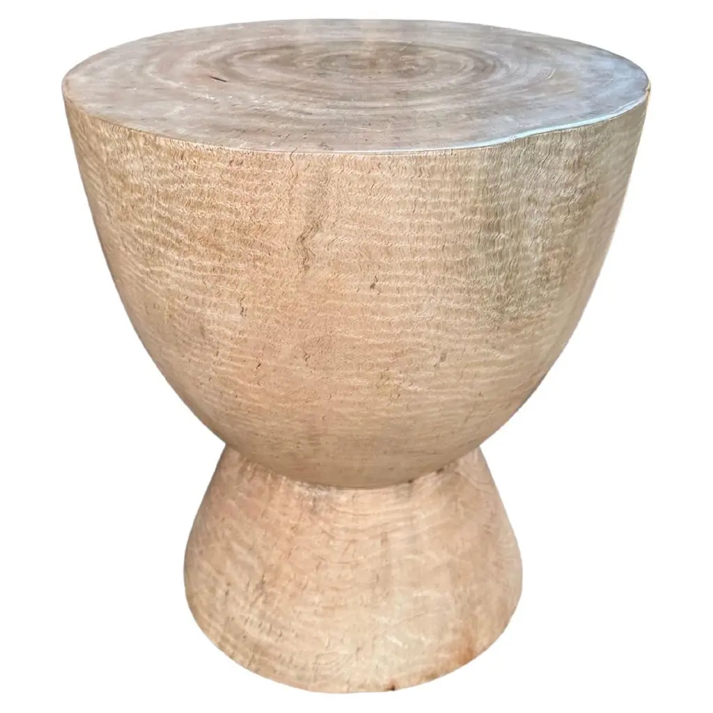 Sculptural Round Side Table Mango Wood, Modern Organic